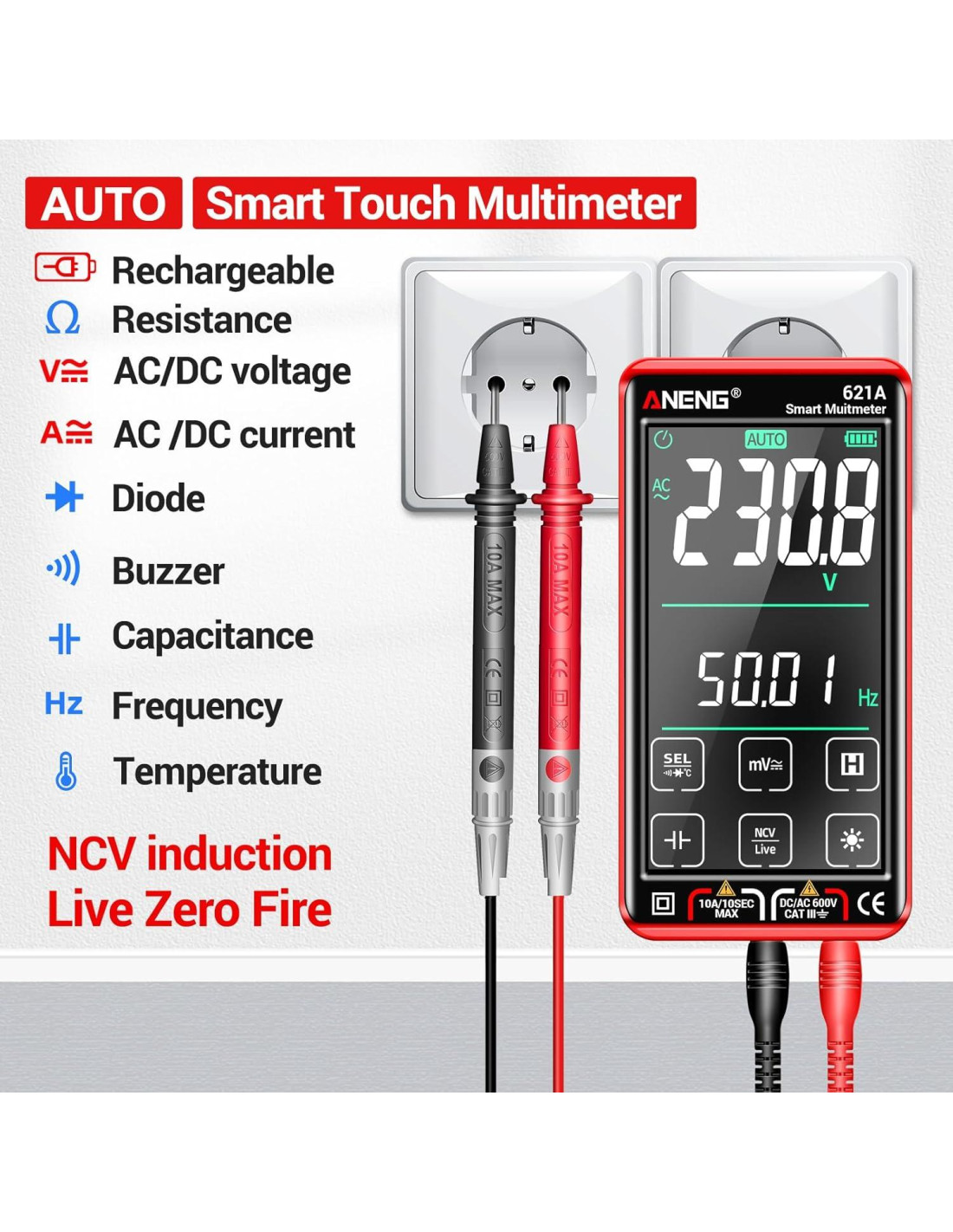 - Asegura Seguridad Doble fusible es anti-quema y protege de sobrecargas, y será más seguro y confiable; Carcasa de ABS resistente a impactos con goma suave sobre-moldeada con un diseño ergonómico compacto, añade protección adicional contra caídas. El probador de continuidad hace que la solución de problemas sea más fácil. Sería un gran regalo para cualquier aficionado al bricolaje y el modo inteligente lo hace simple para las personas mayores.