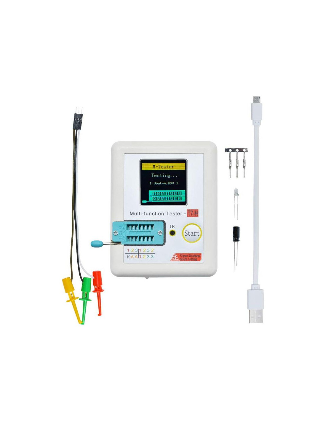 - [Actualización del Medidor LCR] : TC-T7-H es una actualización del LCR-T7, detección automática de transistores NPN y PNP, MOSFET de canal n y canal p, diodo (incluyendo diodo doble), tiristor, BJT, resistor y capacitor y otros componentes, etc. (Para evitar malfunciones, por favor descargue capacitores y otros elementos de prueba antes de usar.)