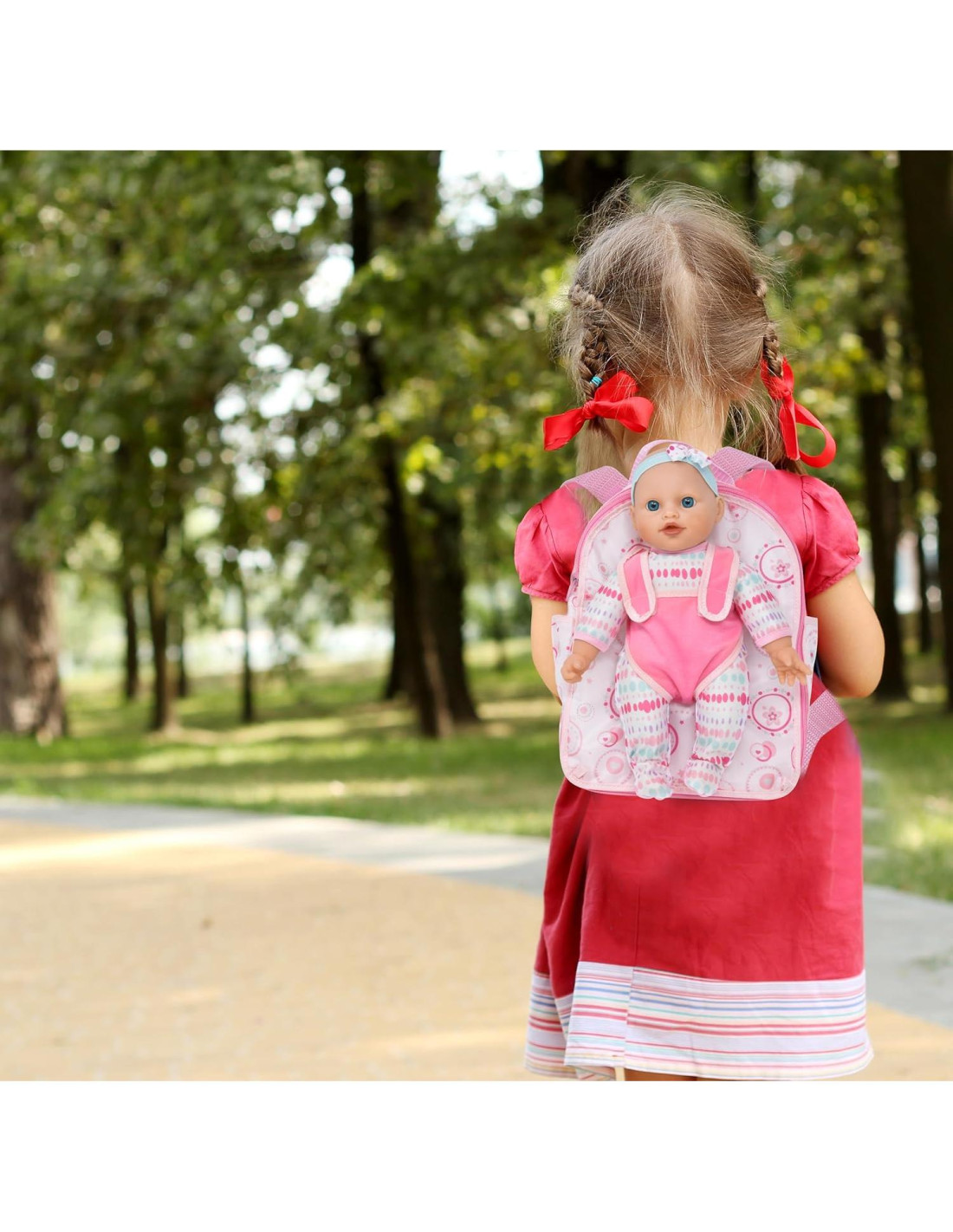 - Transportadora portátil: la mochila rosa incluida con patrones de corazones sirve como un conveniente estuche para almacenar y transportar la muñeca y los accesorios