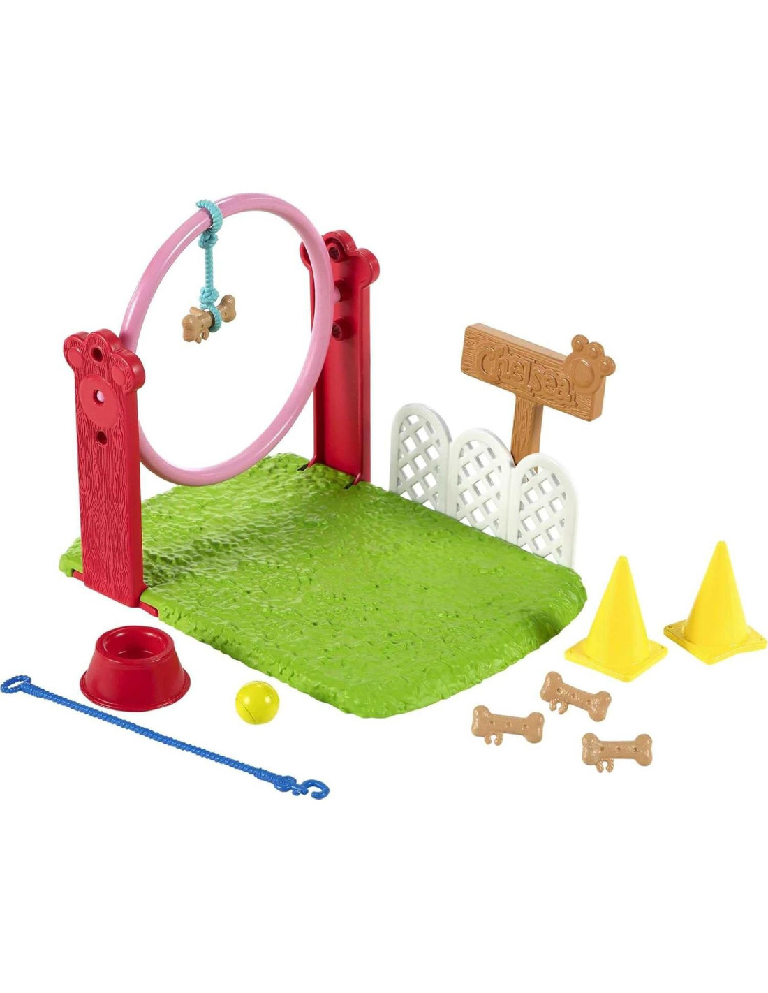 - También incluye un perro con correa, un aro para saltar, conos para un curso de obstáculos, un plato para perros, golosinas de entrenamiento (algunos accesorios pueden ser sostenidos por Chelsea para un juego aún más realista).