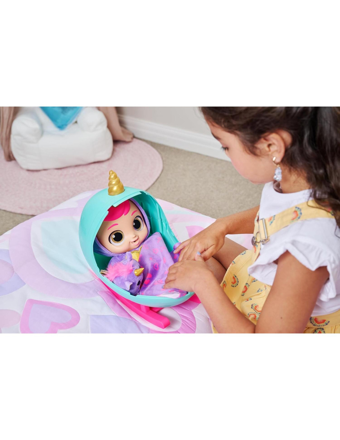 ¡Los Babycorns han llegado y no pueden esperar para jugar! Desempaqueta los mágicos bebés Rainbocorn, anidados dentro de sus cunas mágicas. Encontrarás más de 30 sorpresas, incluyendo un chupete, un conmovedor libro de historias y un peluche boo-boocorn. ¡Mira cómo tu Babycorn cobra vida con luces y sonidos mágicos! ¡Estos adorables pequeños no pueden esperar a ser cuidados! ¿Qué Babycorn llevarás contigo en tu próxima aventura mágica?