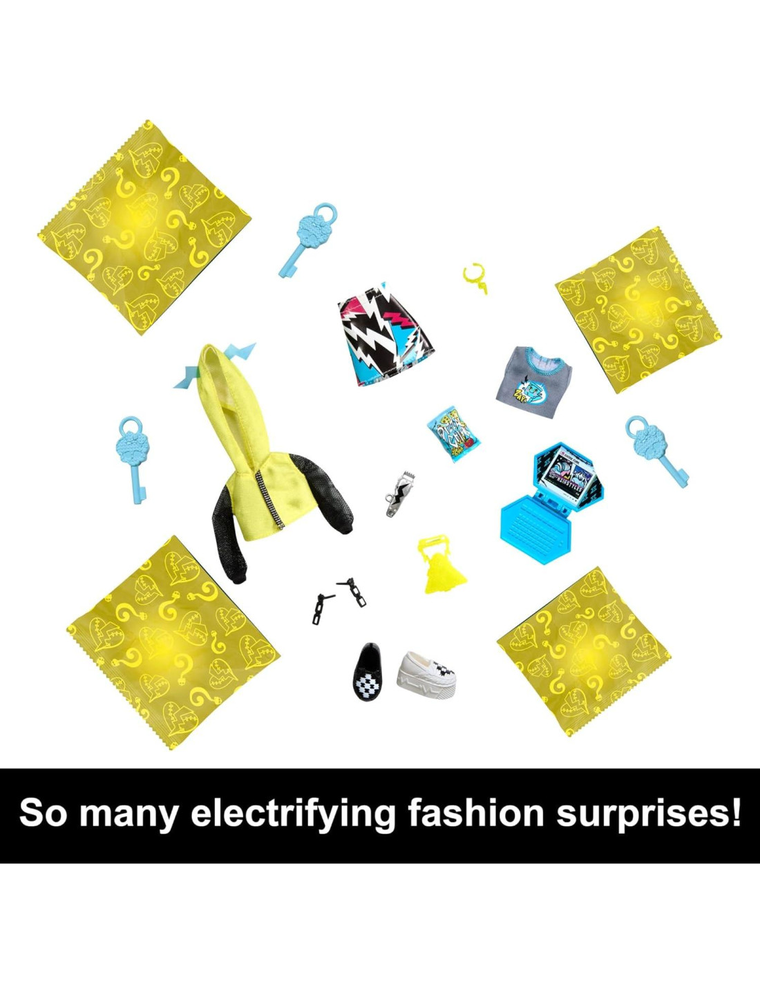 - Apaga las luces para descubrir tres accesorios que brillan en la oscuridad. Mezcla y combina con las otras piezas de estilo incluidas para crear atuendos que iluminarán incluso las noches más oscuras.