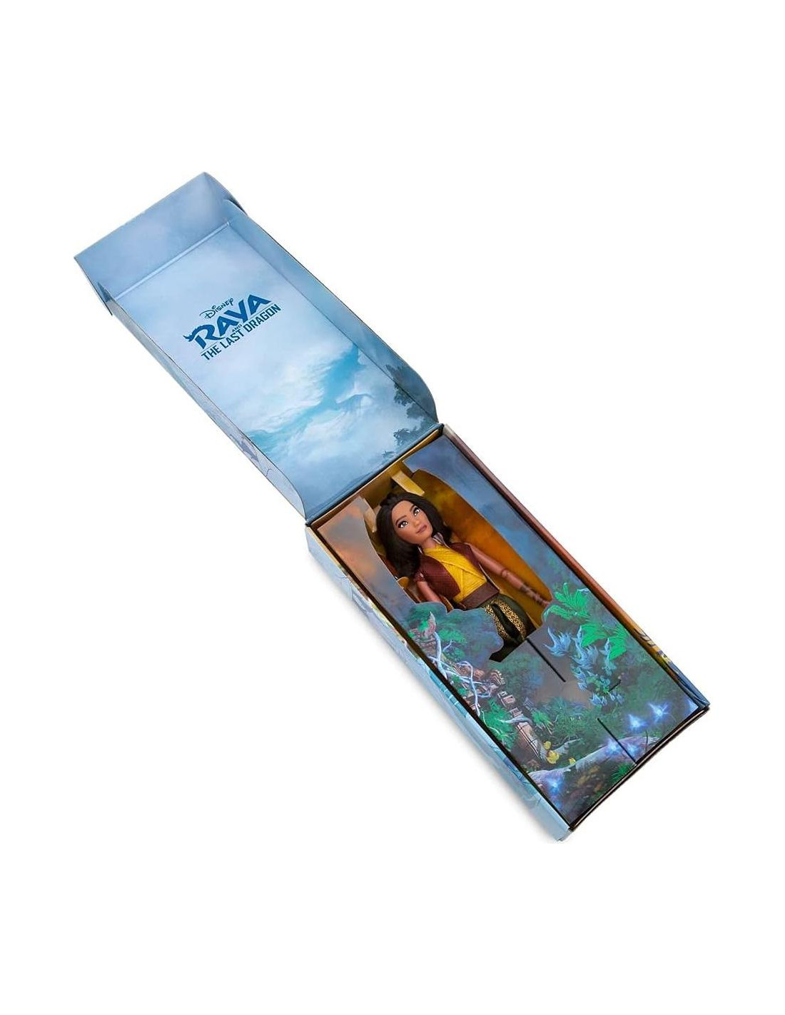 - Muñeca Clásica de Raya de Disney con disfraz de lujo que incluye parte superior envolvente, chaleco, pantalones con filigrana brillante, botas y guante