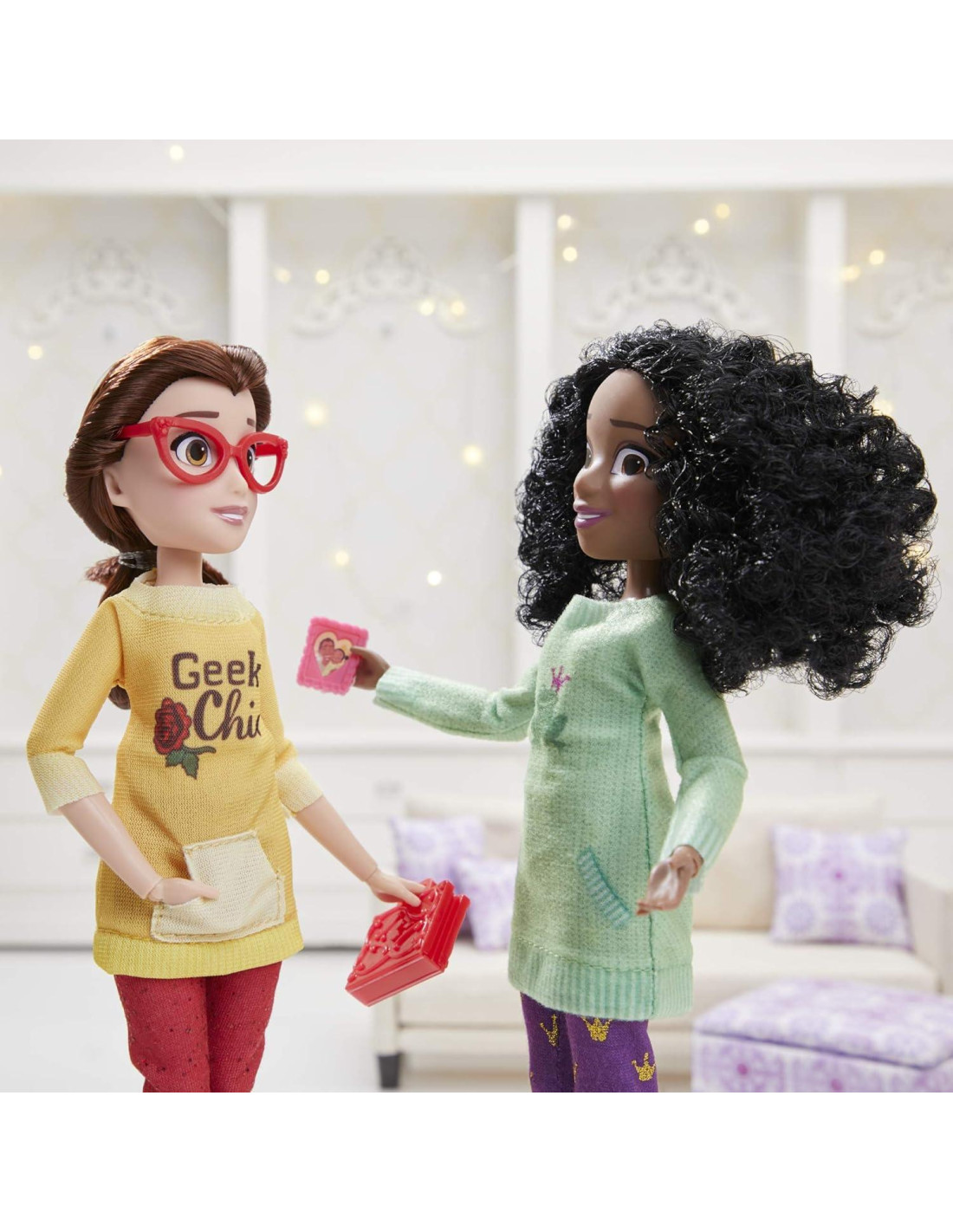 - DIVERTIDOS ACCESORIOS DE MODA Y ZAPATOS REMOVIBLES La muñeca Bella incluye zapatillas removibles, gafas y un libro