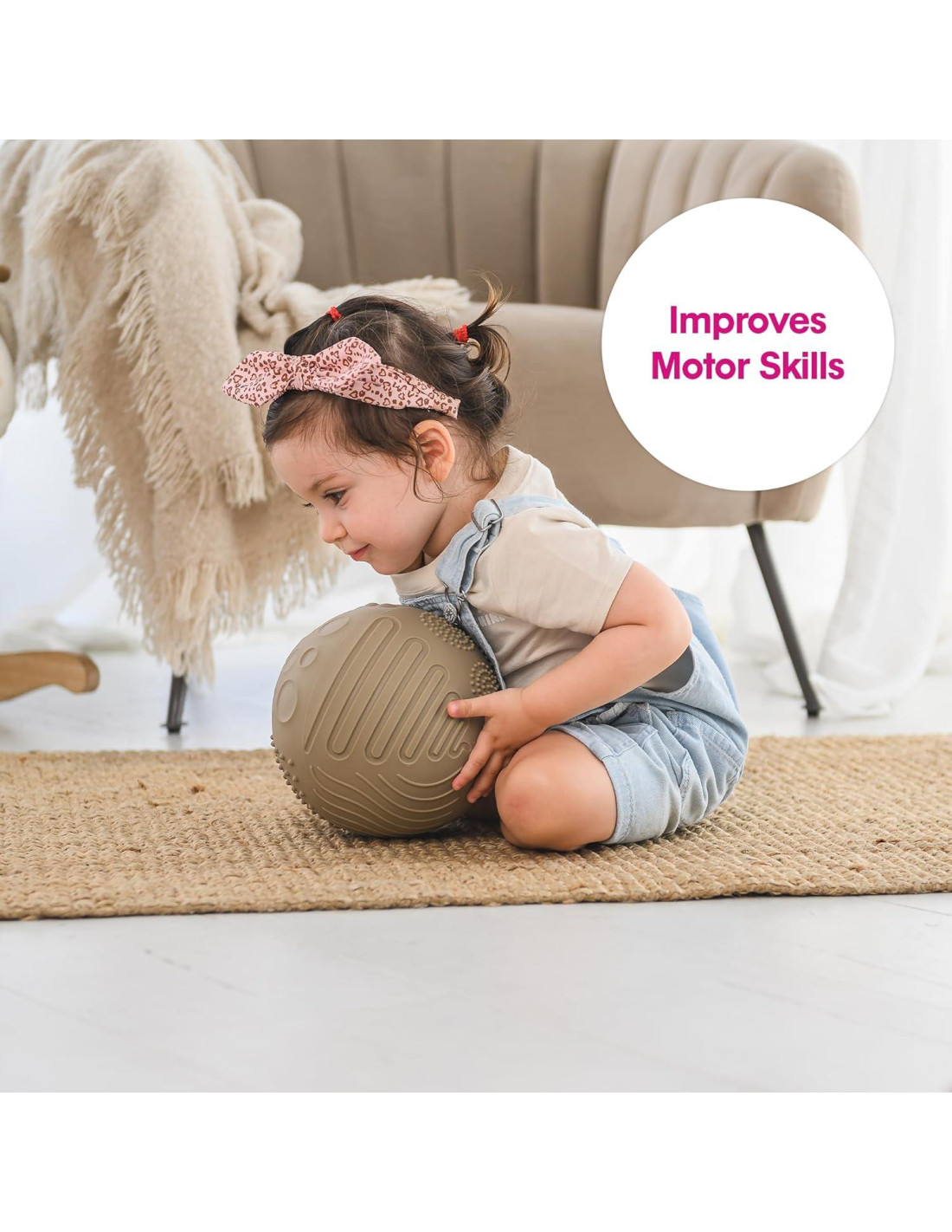 - QUÉ HAY DENTRO: Un conjunto incluye una Bola Sensorial Texturizada Boho Chic Olive de 7" para niños de 1 a 3 años. Suministrada completamente inflada pero se puede volver a inflar a través de una válvula incorporada. Recomendado para niños a partir de 6 meses.