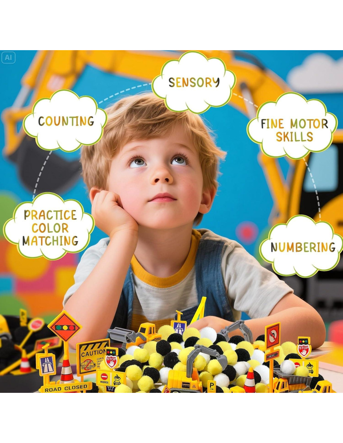- Regalo Reflexivo: los juegos de habilidades motoras finas de pom poms, construcciones y señales de tráfico son adorables y exquisitos, combinados con colores brillantes, serán favorecidos tanto por niños como por adultos, adecuados como buenos regalos para darles en fiestas de construcción, primavera, verano, su cumpleaños, Día del Niño, vacaciones y más