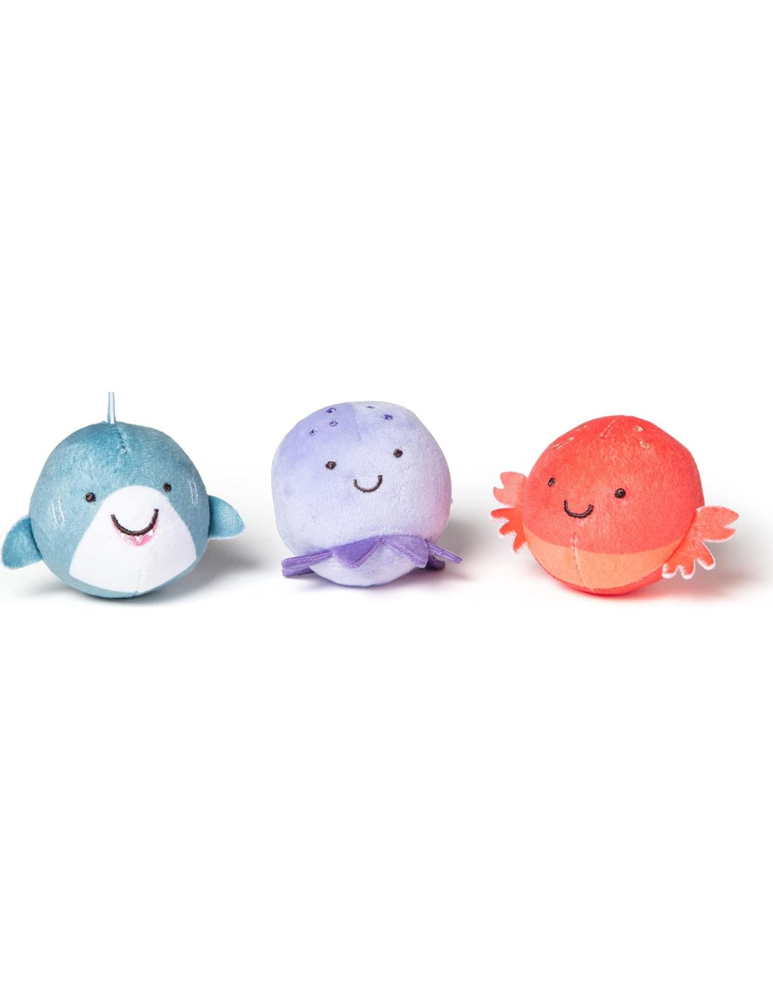 - Incluye torre de resbaladilla de madera con laberinto de cuentas incorporado, una estrella de mar para girar y aleta de ballena para presionar que detiene y comienza el rodar, y un embudo duradero removible; 3 Rollables (tiburón, cangrejo y pulpo con sonajero).
