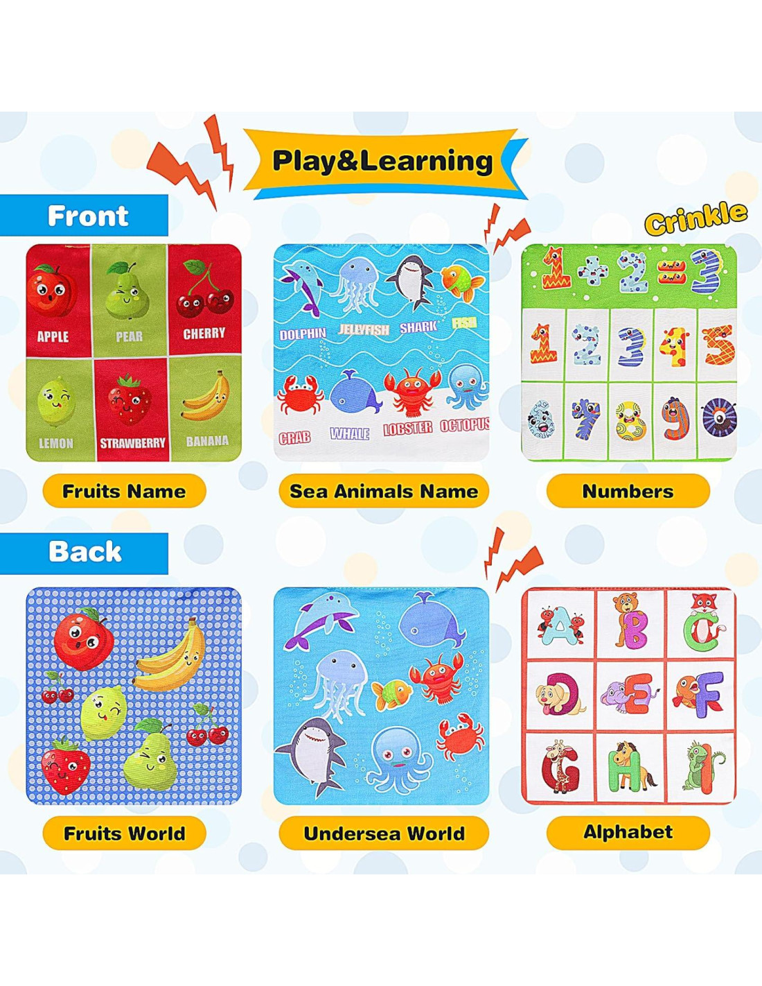 - Estimula el Desarrollo de la Visión y la Audición del Bebé: Nuestro juguete de caja de pañuelos proporciona 3 papeles arrugados de múltiples temas para el bebé, 10 bufandas de juego coloridas para bebés y un espejo para tiempo de barriga para que jueguen niños de un año. Los niños pequeños se sentirán atraídos por los colores vibrantes y el sonido arrugado, lo que promoverá sus habilidades motoras finas, distinguir colores, estimular el desarrollo de su audición y visión, y ejercitar su iluminación cerebral temprana.