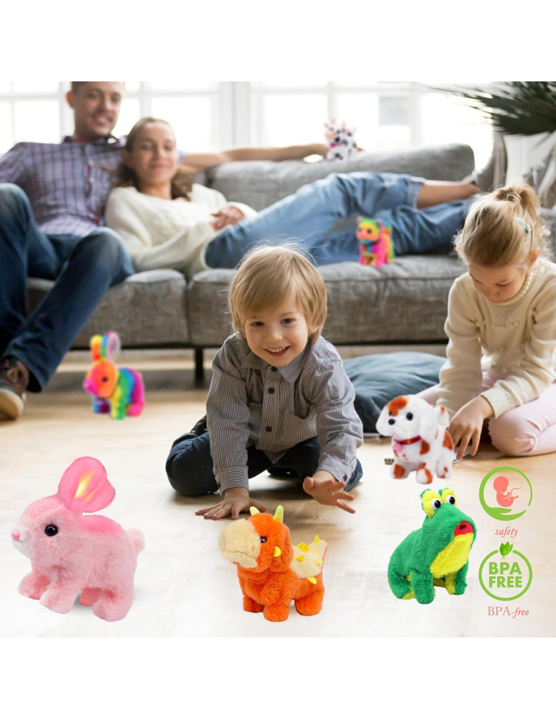 - ACERCA DEL CONEJITO SALTARÍN: Este adorable conejito mide aproximadamente 7 pulgadas (17,78 cm) de largo, el tamaño portátil y el peso ligero permiten que los niños lo lleven a todas partes y jueguen con él. El conejito saltarín puede atraer fácilmente la atención de los niños, te da más espacio y tiempo para hacer tus propias cosas. Inspira a tus hijos y sorprende a amigos o invitados con un regalo interactivo ideal para cualquier ocasión. Deja que la mente de tus hijos corra libremente, conecte su imaginación y disfrute de un feliz tiempo de juego.
