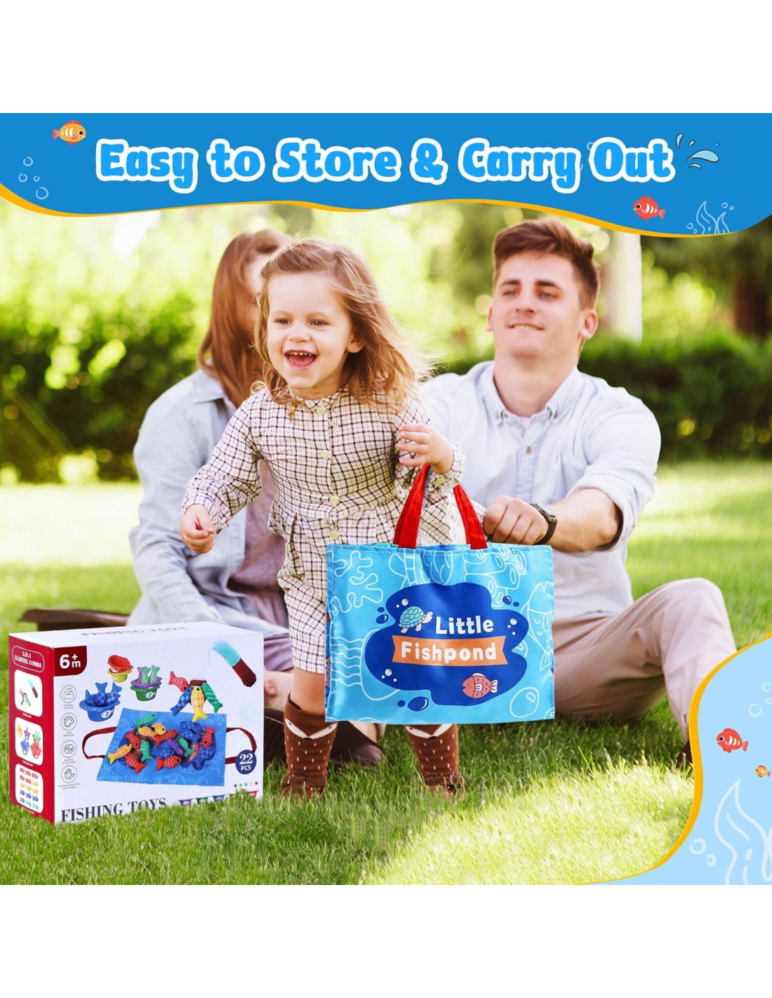 - Tapete oceánico práctico: El tapete oceánico sirve como área de juego y solución de almacenamiento, lo que facilita increíblemente la limpieza después del tiempo de juego. Simplemente reúne los peces de tela, el palo de pescar y las tazas en la bolsa de almacenamiento para un transporte conveniente. Es ideal para citas de juego, salidas familiares o viajes, asegurando que todos los componentes se mantengan juntos y fácilmente accesibles. Es una opción práctica para los padres que buscan un juguete fácil de transportar.