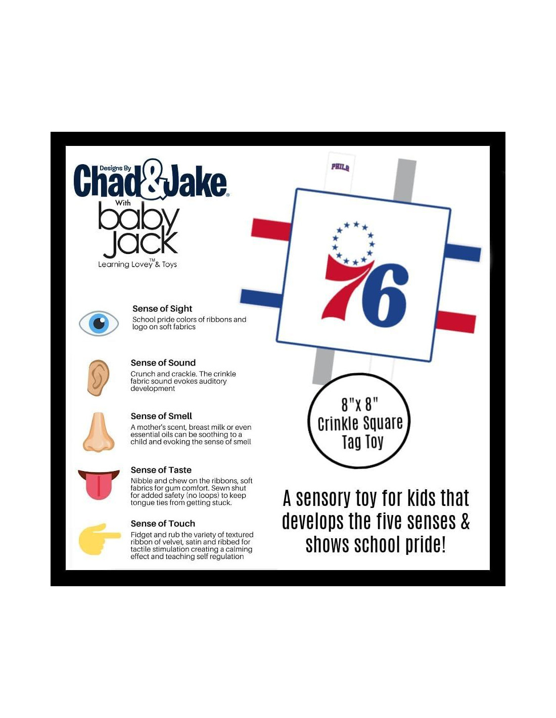 Un juguete de peluche suave y reconfortante para que los niños lo sostengan. La tela tiene equipos para mostrar su orgullo. ¡Una maravillosa manera de fomentar el amor por un equipo local y animar juntos! El bebé Jack se quedó con su dedo atrapado en una cinta en bucle y creamos un juguete de etiqueta más seguro en el mercado. Cosemos todas las cintas en pestañas y aún proporciona juego y estimulación sensorial. Un juguete de Jack para bebés es un regalo perfecto para dar a un recién nacido o en su primer cumpleaños, ya que puede coordinarse bien con otros artículos para bebés. ¡Encuentra el equipo favorito y asegúrate de que empiecen jóvenes para animarlos!