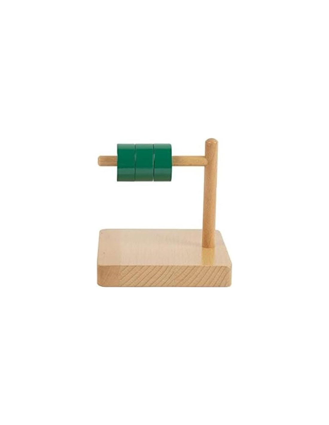 - Este material ayuda al desarrollo del niño en la conciencia espacial, la coordinación mano-ojo, así como a practicar diferentes agarres de dedos mientras el niño descubre cómo deslizar los discos en el dowel.