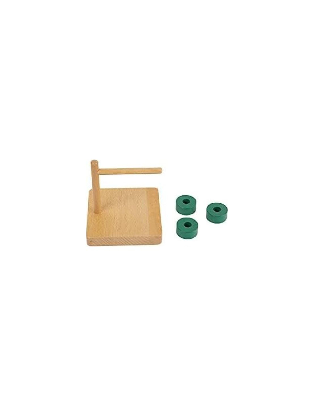 - Este es un material clásico de Montessori destinado a ser utilizado con niños de 12-18 meses. Este material de apilamiento ayuda al niño a desarrollar la coordinación mano-ojo y desarrolla su agarre.