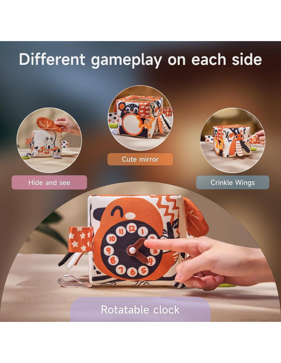 - Caja de Tejido de Descubrimiento Multisided: Presenta un adorable espejo, un dial de reloj giratorio y educativo, alas de insecto crinkle, una rana que aparece y desaparece, y sorpresas en todos los lados. El diseño íntimo cuenta con mordedores suaves adjuntos para calmar las encías durante el tiempo de juego.