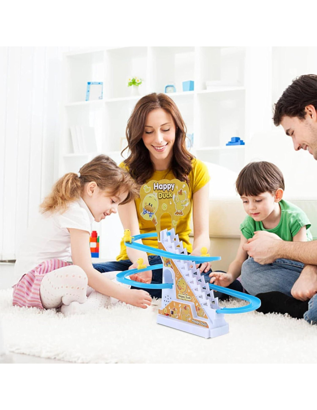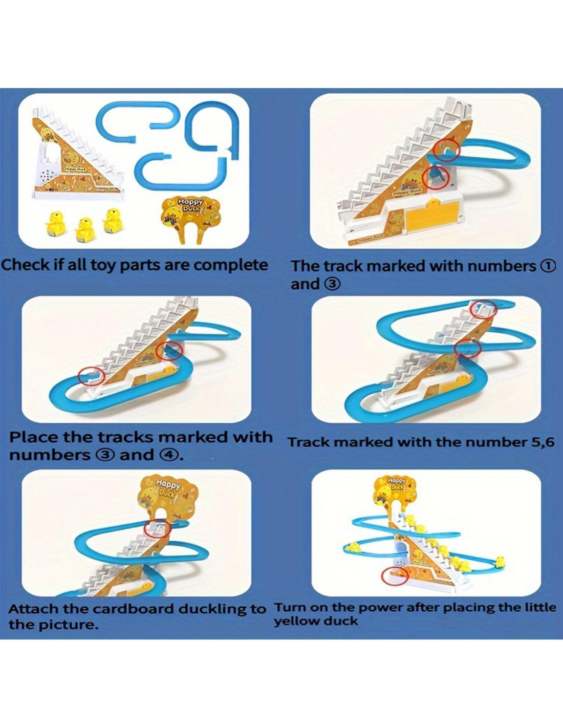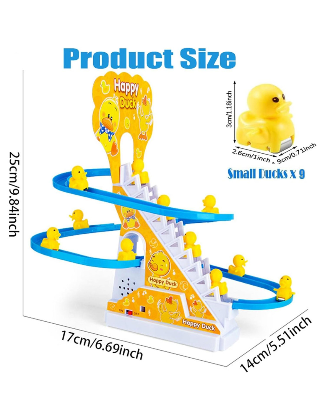 - DISEÑO DIVERTIDO: El conjunto de juguetes de patos está equipado con luces LED intermitentes, el juguete tiene una pista de sonido divertida y música animada (con un botón de encendido/apagado), cuando comienzas, el pato subirá la escalera con la música y luego bajará por el tobogán.