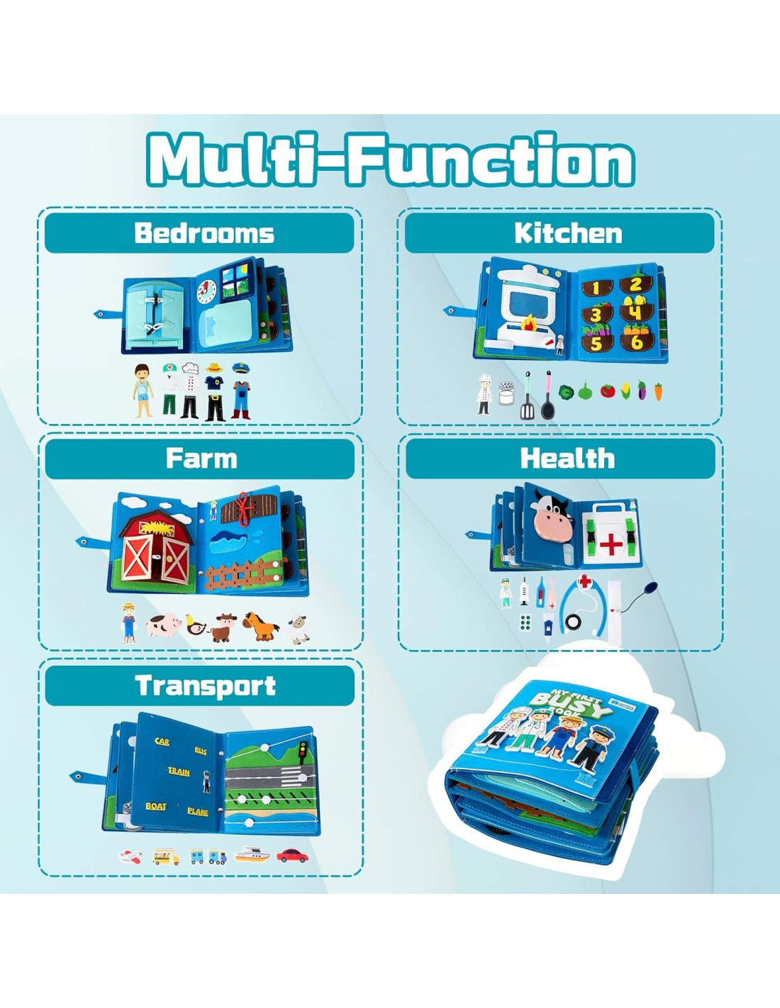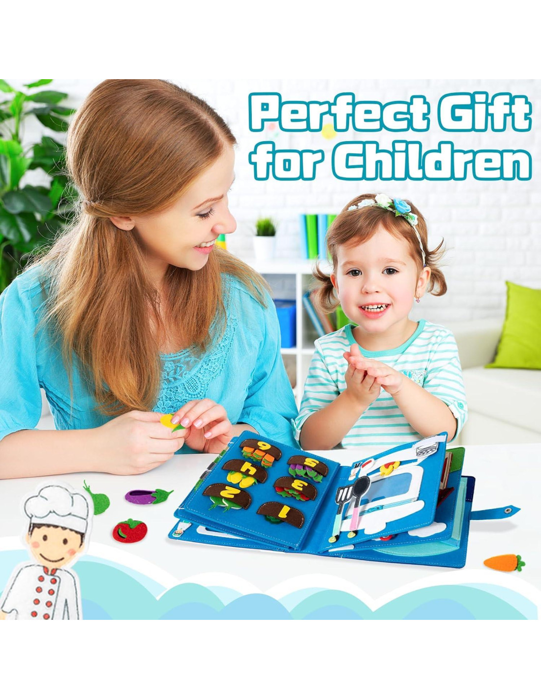 - Gran Opción de Juguetes de Viaje: El diseño portátil y ligero permite que el bebé lo ponga fácilmente en una mochila y lo lleve a cualquier lugar. Este libro ocupado también es ideal para aprender en el jardín de infancia, viajes por carretera, paseos en coche, viajes en avión y mantener a su hijo ocupado y tranquilo. Regalo perfecto para Navidad, Año Nuevo, Acción de Gracias/días de los niños/cumpleaños de 3, 4, 5 y 6 años para niños/niñas/bebés.