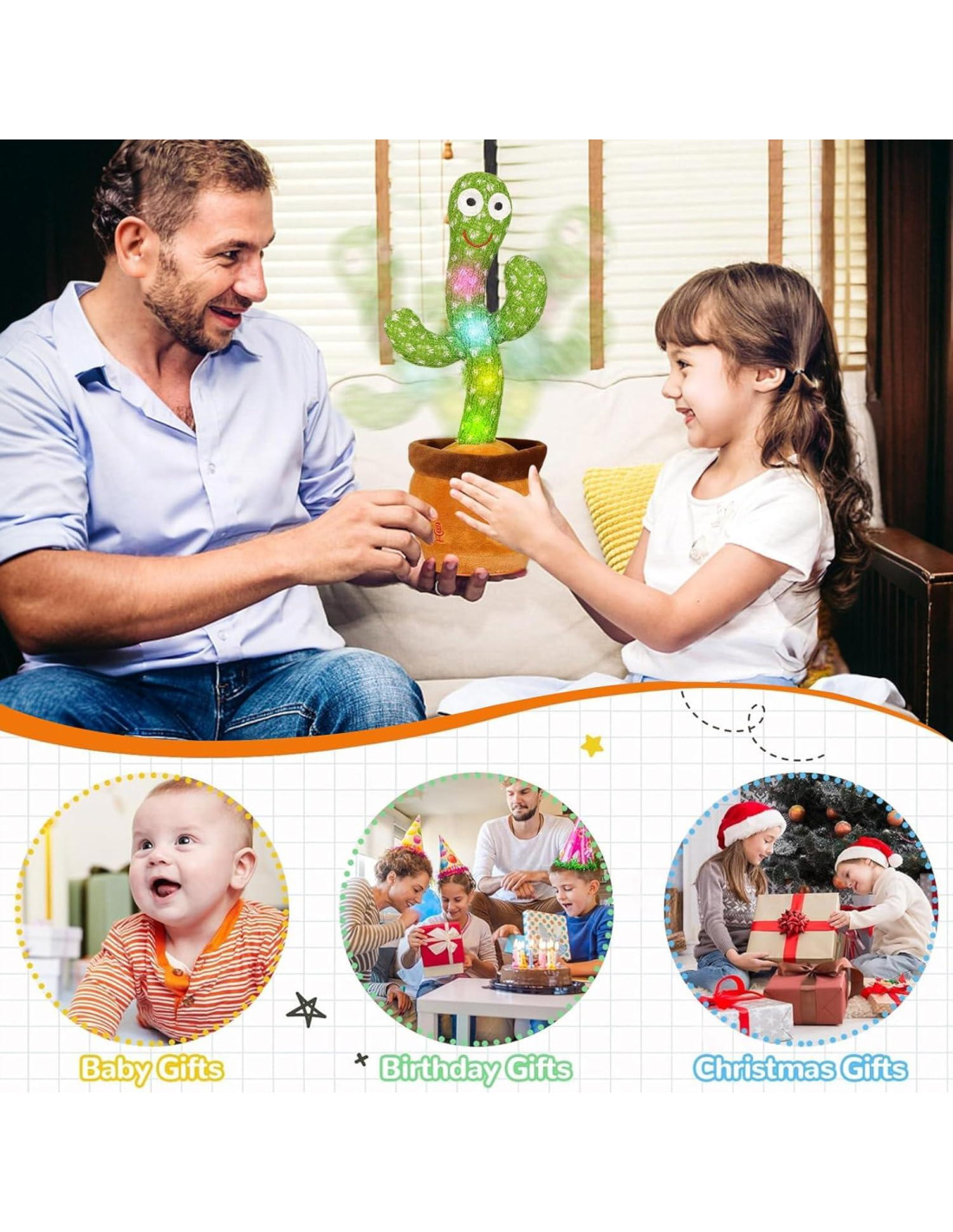 - Regalo Educativo Cactus Hablante: El juguete cactus cantante imita, graba y repite lo que los niños dicen de una manera humorística y divertida. Por ejemplo, '¡Feliz cumpleaños! Fomenta el desarrollo del lenguaje de tu bebé. Este cactus bailarín para bebés, con sus movimientos cómicos y luces vibrantes, anima a los niños a moverse y reír, mejorando sus habilidades motoras y experiencias sensoriales.