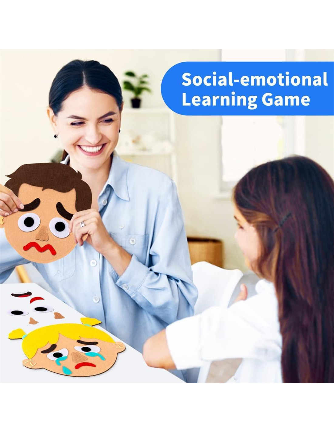 - [Desarrollo de la Inteligencia Emocional] Enseña a los niños a reconocer 6 emociones básicas (feliz, triste, enojado, etc.) a través de piezas de fieltro táctiles y escenarios de juego de roles, alineándose con los principios educativos Montessori.