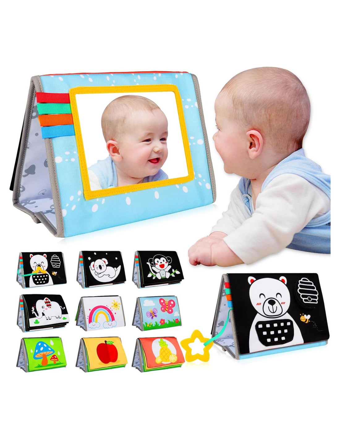 - Juguetes Montessori para un Feliz Tiempo Boca Abajo: Los juguetes para bebés de 3-6 meses incluyen espejo seguro para bebés, libro arrugado suave, mordedor, para que tu bebé disfrute del tiempo de juego. Los juguetes de tiempo boca abajo mejoran la interacción entre padres e hijos, mejoran el desarrollo visual, auditivo y cerebral de los bebés. Promueven de manera integral el desarrollo cerebral de tu bebé y cultivan su interés por explorar el mundo activamente.