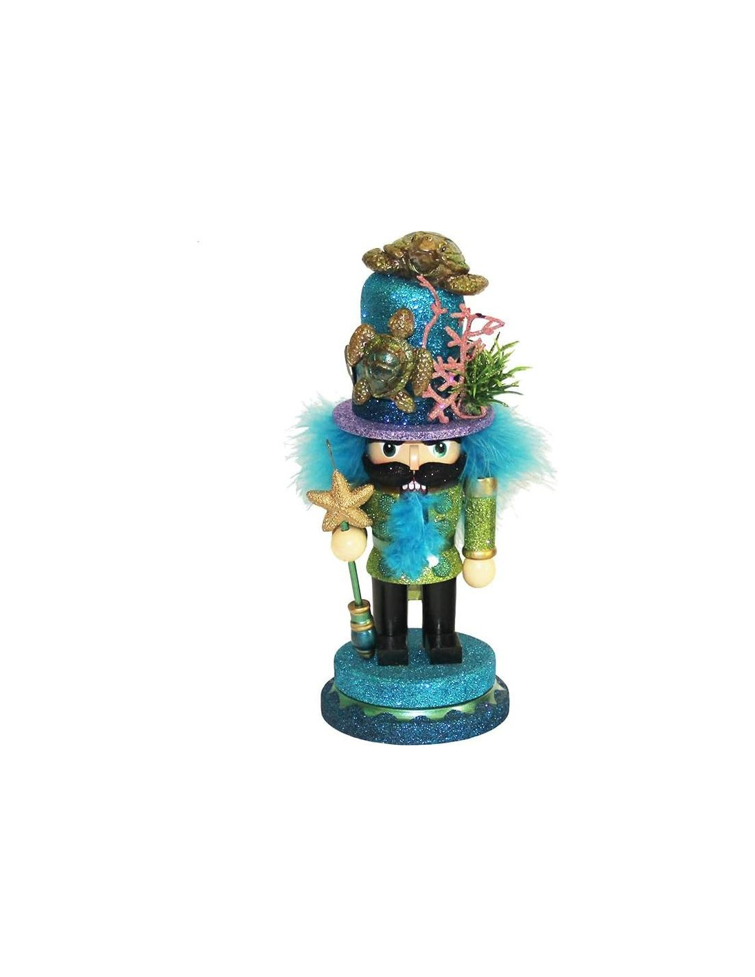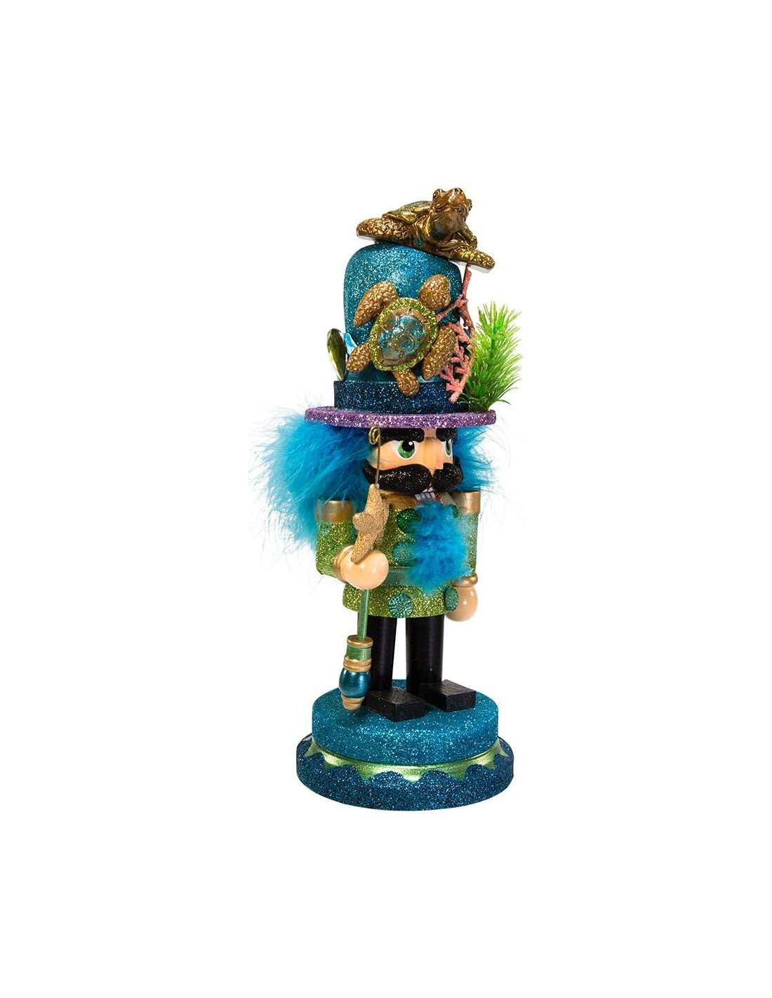 Lleva parte del mundo marino a casa con este Kurt Adler 28 cm Cascanueces de Hollywood con Sombrero de Tortuga Marina. Diseñado por la renombrada artista Holly Adler, la Colección Hollywood es creada exclusivamente para Kurt S. Adler, Inc. e incluye una variedad de diseños que incluyen cascanueces navideños, de fantasía y de uso diario, dando un giro único y vibrante a los cascanueces tradicionales. Este cascanueces de Hollywood en particular presenta un cascanueces que es amigo del mar. Adornado con un atuendo de purpurina azul y dorada, sostiene un bastón rematado con una estrella de mar mientras su sombrero está decorado con tortugas marinas y arrecifes de coral. Completa tu colección hoy mismo.