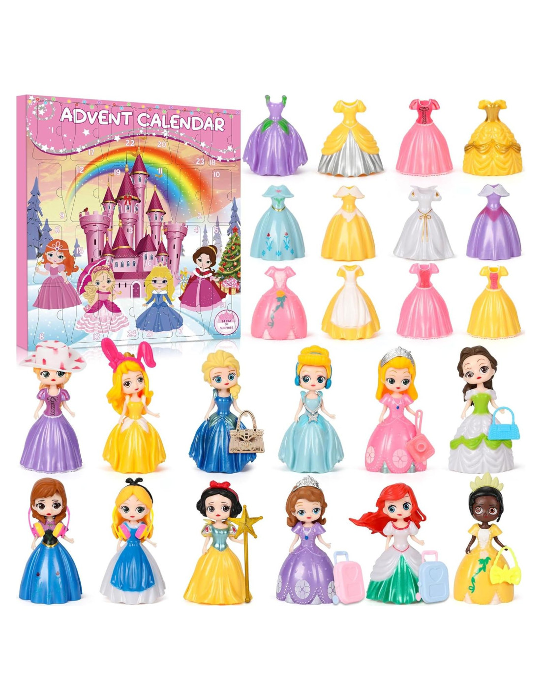 - [Calendario de Adviento de Navidad Princesa] ¡Trae la magia de las fiestas a la vida con el Calendario de Adviento de Princesa de 24 Días! Este encantador conteo regresivo para Navidad cuenta con 24 puertas numeradas, hay 12 juguetes de princesa, 12 vestidos y accesorios, para que cada princesa pueda presentar un nuevo look.