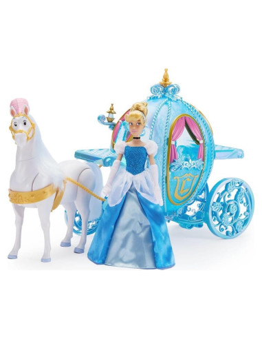 - Carroza de Calabaza Fantástica: La carroza se ilumina con la presión de un botón, está impregnada de brillo y tiene un acabado iridiscente que añade chispa a cualquier aventura. Un imprescindible para los sets de juego de muñecas y juguetes de Cenicienta.