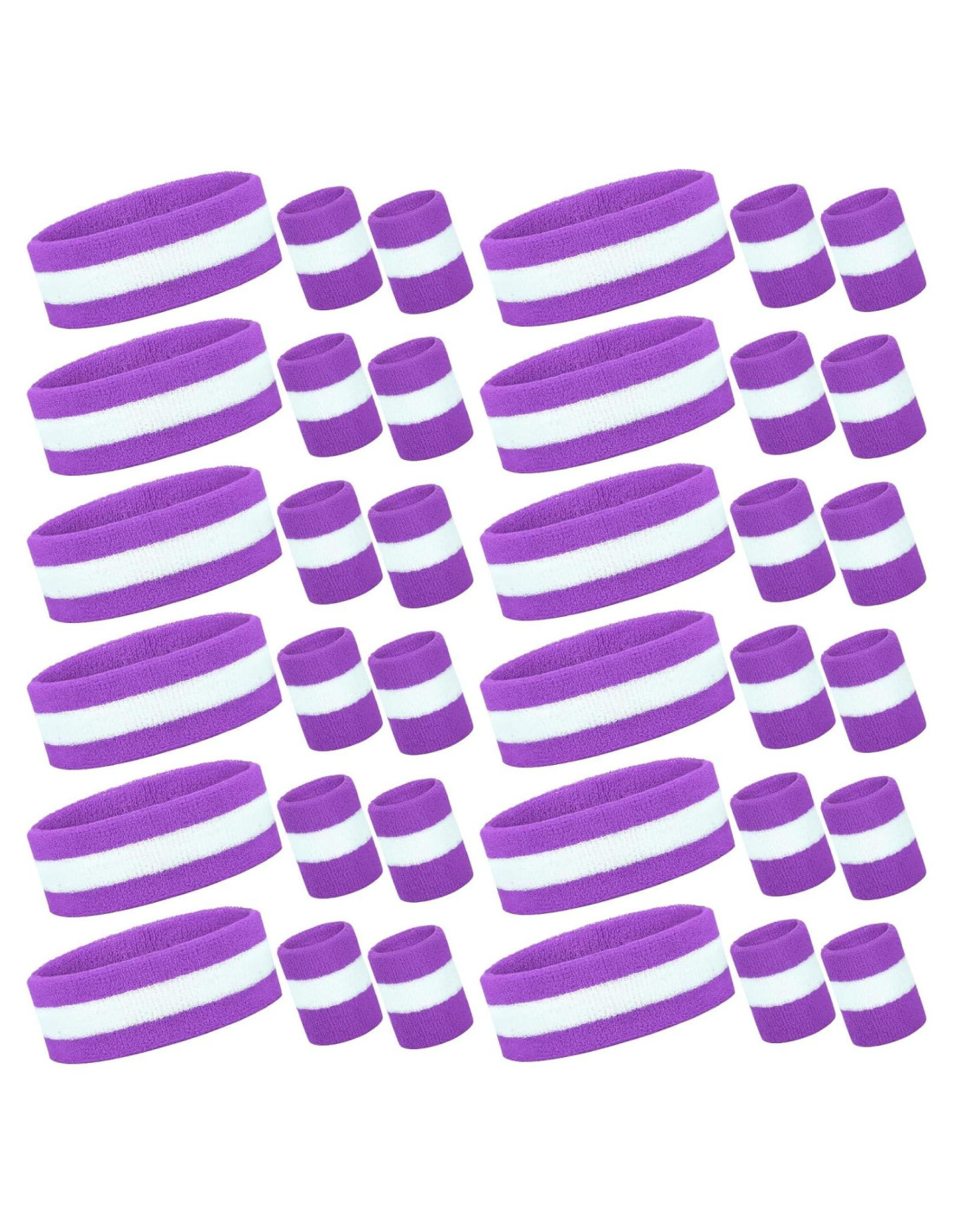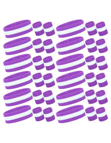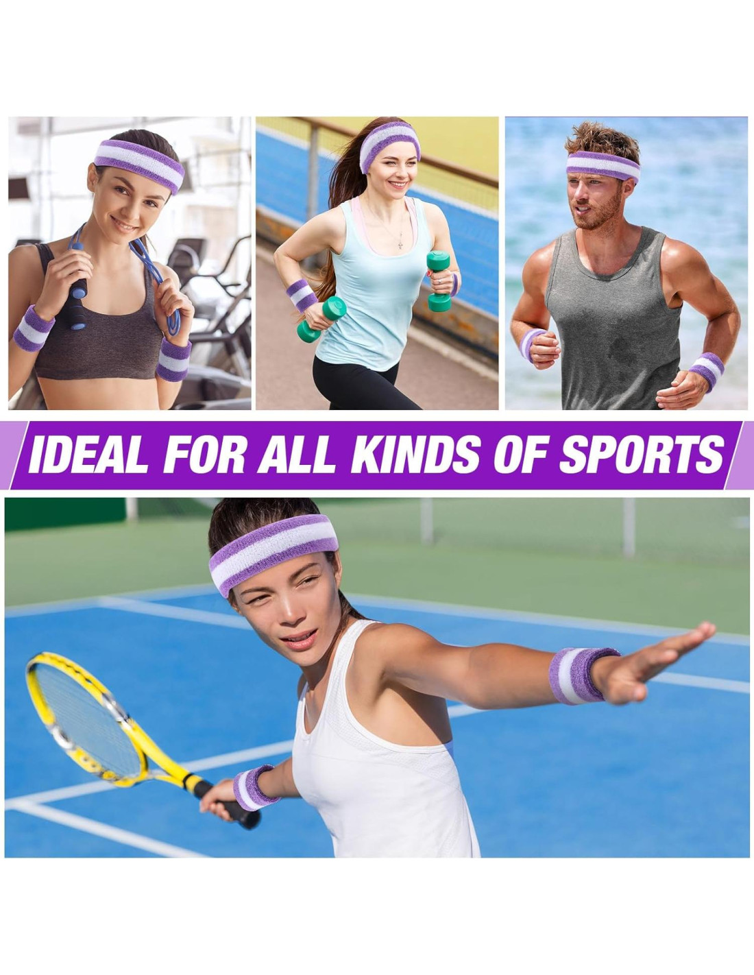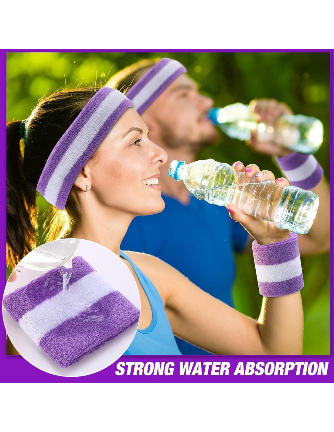 - Talla Única para la Mayoría de las Personas: cada diadema mide aproximadamente 5 x 18 cm (1.97 x 7.09 pulgadas), y cada muñequera mide aproximadamente 8 x 8 cm (3.15 x 3.15 pulgadas), con buena elasticidad; Nuestras diademas y muñequeras moradas y blancas son adecuadas para la cabeza y muñeca de la mayoría de los adultos, ideales tanto para hombres como para mujeres