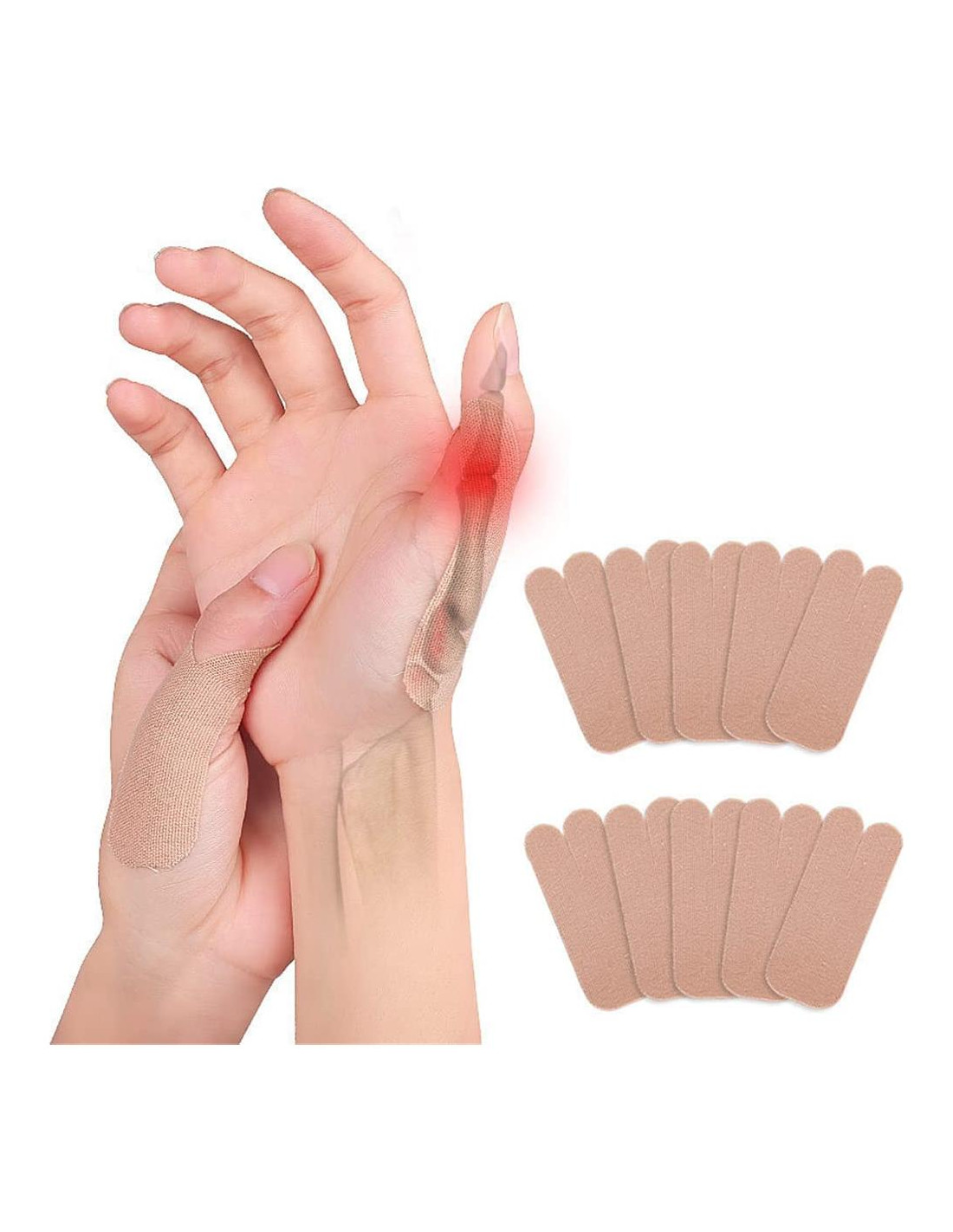 - Lo Que Recibirás: 10 PCS en piel o 40 PCS en piel, negro, rosa y azul. El tamaño del producto es 7 * 3 cm (2.76 * 1.18 pulgadas), elástico y adecuado para la mayoría de las personas. También puedes cortarlo según tus necesidades. Pégalo en tus dedos, muñecas, talones, plantas y otras partes para proporcionar soporte adicional y aliviar el dolor y la fatiga.