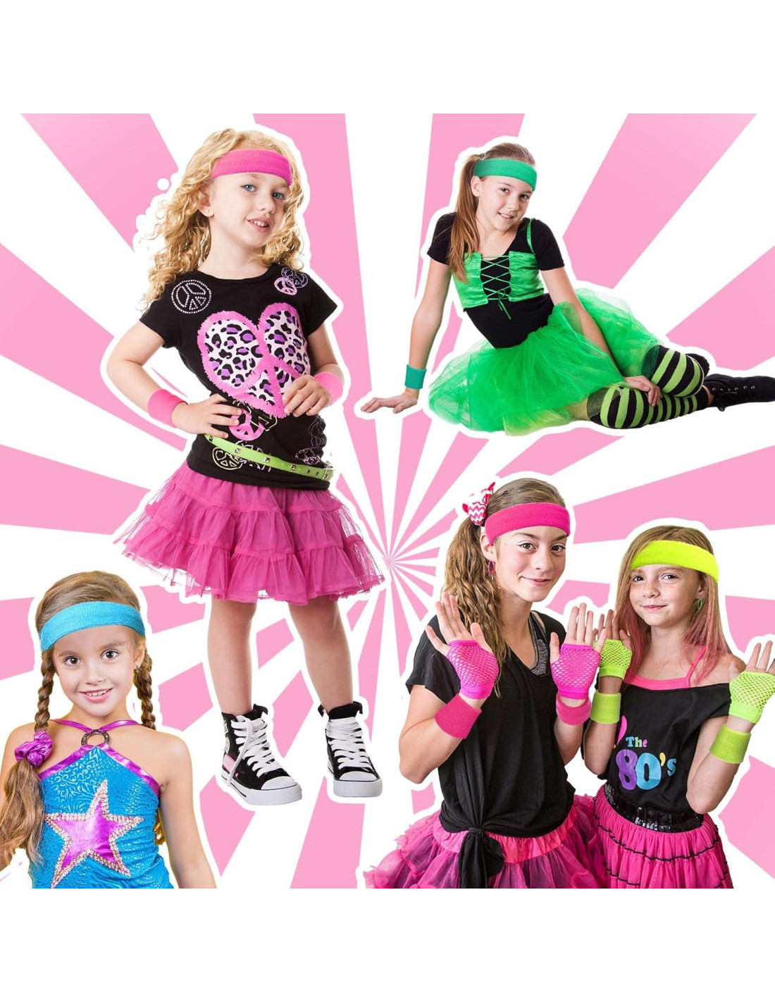 - Tamaño Ideal: estas diademas de los 80 miden aproximadamente 16.51 x 3.81 cm, mientras que las muñequeras neón miden aproximadamente 6.00 x 6.00 cm; Este tamaño complementario asegura que se ajusten cómodamente a la mayoría de los niños, haciéndolas ideales para eventos temáticos de los 80