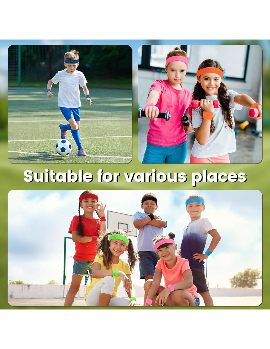 - Multicolores para Elegir: los conjuntos de bandas para el sudor tienen 9 colores diferentes para elegir, se pueden combinar bien con la ropa diferente de tu hijo, haciendo que tus hijos sean más activos.