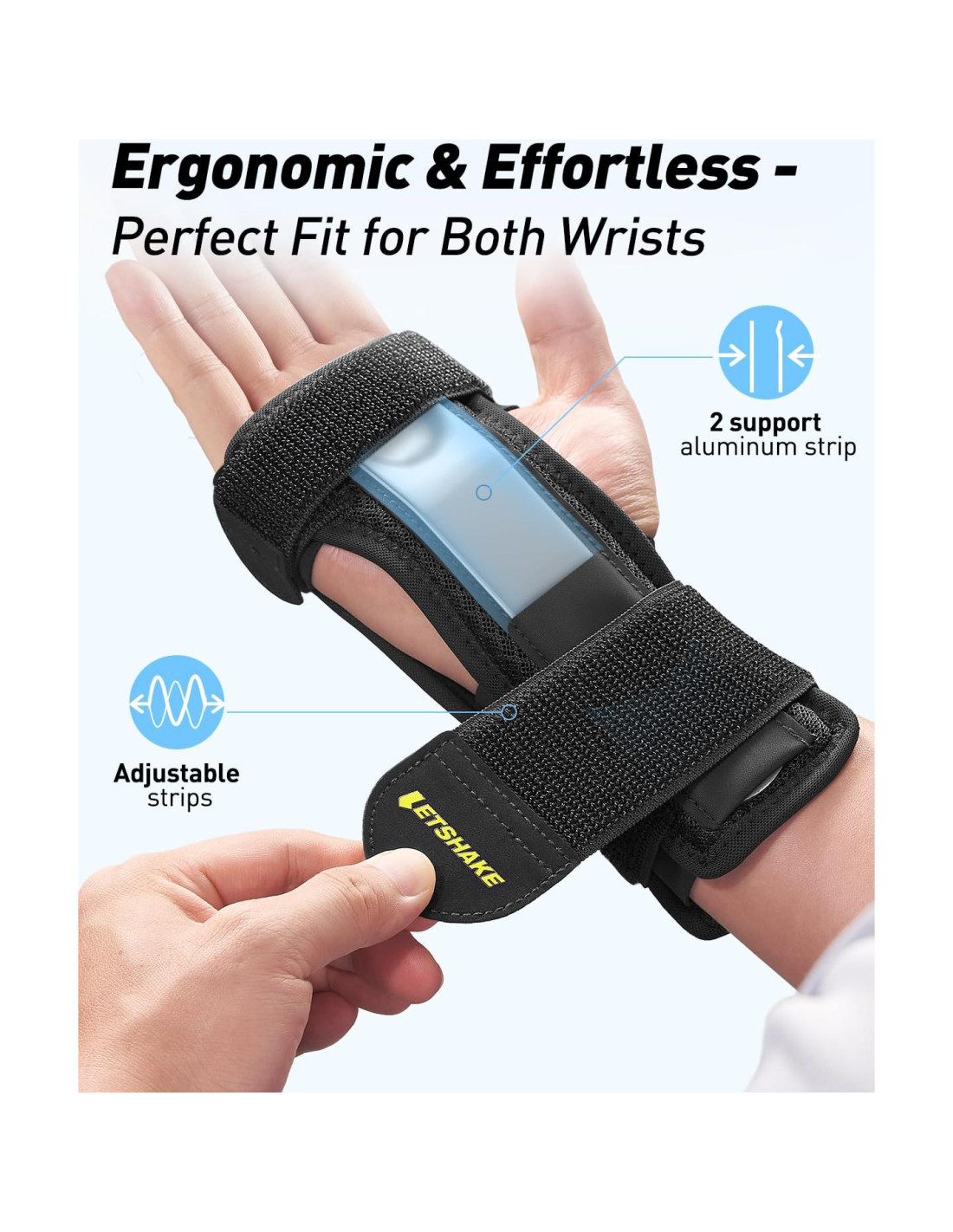 - Diseño universal para mano izquierda y derecha: Una férula de muñeca se adapta a ambas manos. Diseñada con dos férulas removibles y dos correas elásticas y ajustables de la férula para túnel carpiano, es fácil de usar y ajustar por ti mismo. Simplemente alinea tu palma con el panel frontal curvado, posiciona el panel trasero y asegura las correas para una estabilidad instantánea. Voltea las férulas para cambiar de mano en segundos.