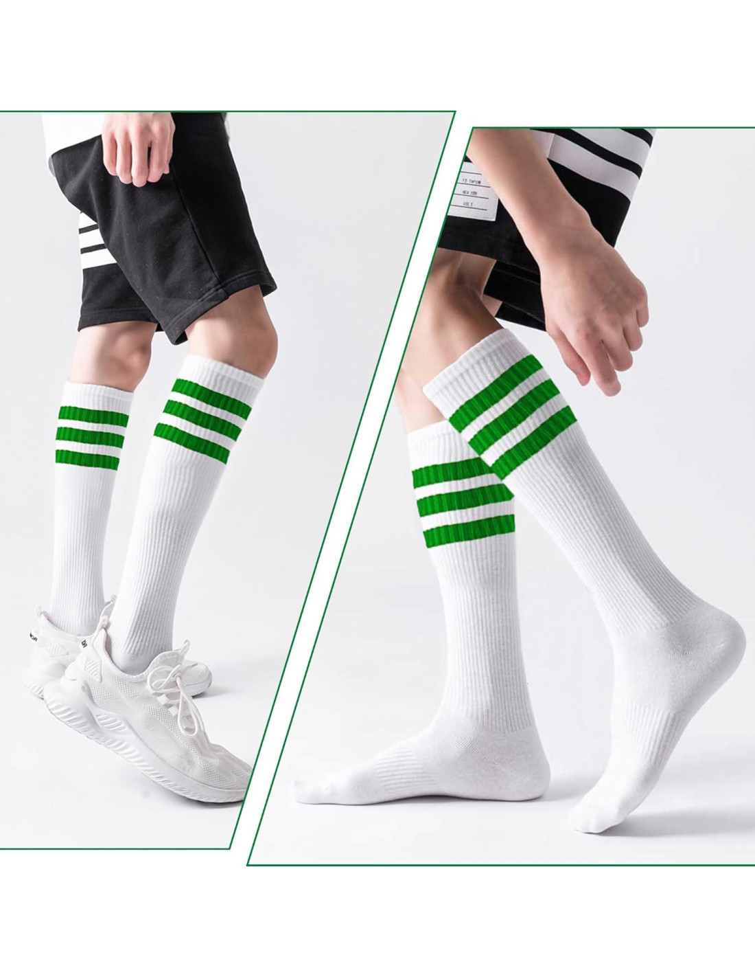 - [Dos Conjuntos de Muñequeras y Calcetines a Rayas] 4 piezas de muñequeras para muñecas, 2 piezas de diadema verde y blanca y 2 pares de calcetines de tubo alto. Para un estilo de moda de los 80s, estas muñequeras y calcetines a rayas elegantes y especiales atraerán la atención de los demás, haciéndote destacar entre otros en fiestas temáticas. Este conjunto de muñequeras y calcetines a rayas es ideal para tu entrenamiento diario o para disfrazarte en fiestas.