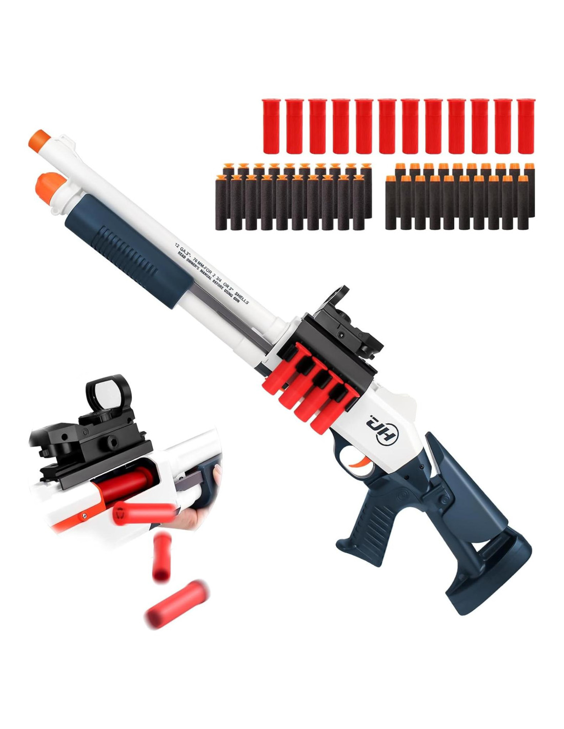 - [Carga Manual] : Después de tirar del mango del cerrojo, puedes extraer la concha. Con cada tirón, dispara un dardo blando. Juguete de eyección de conchas altamente emocionante.
