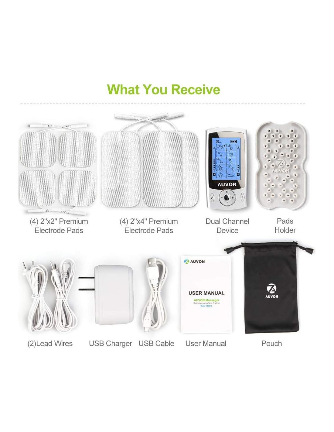 - Lo Que Recibes: 1 x Máquina TENS de Doble Canal, 4 x Electrodos Cuadrados de 2", 4 x Parches Rectangulares Grandes de 2" x 4", 2 x Cables de Conexión, 1 x Cable USB, 1 x Cargador USB, 1 x Manual del Usuario, 1 x Soporte para Parches, 1 x Bolsa, nuestra garantía de 24 meses y soporte técnico y servicio al cliente amigable (4 piezas de parches de 2x2 están en un paquete mientras que 2 piezas de parches de 2x4 están en un paquete. Por favor, abre primero la bolsa sellada y despliega cada paquete de parches antes de contar la cantidad de parches.)