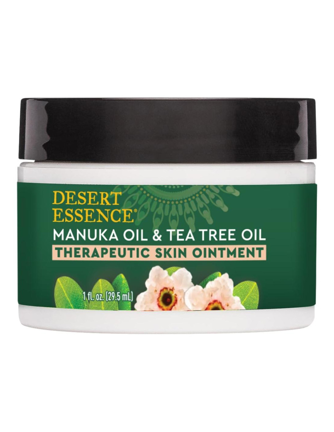 El ungüento de piel de Manuka y Aceite de Árbol de Té de Desert Essence es un bálsamo tópico de 1 fl oz (29.5 mL) formulado con aceites botánicos para el acondicionamiento diario de la piel. Con aceite de manuka, aceite de árbol de té y aceite de lavanda, esta mezcla ofrece una textura suave y no grasosa que se absorbe bien. El ungüento está empaquetado en un tubo de plástico compacto de 1 fl oz (29.5 mL) con una tapa de rosca segura para una aplicación fácil y dirigida. Elaborado con ingredientes de origen vegetal y nunca probado en animales, este ungüento es adecuado para el uso rutinario en pequeñas áreas que necesitan humedad y cuidado extra.