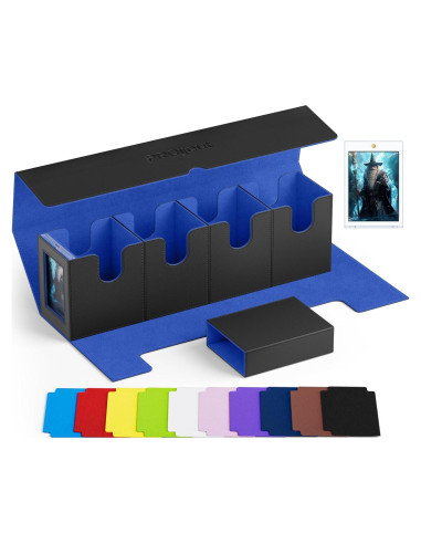 - [Gran Capacidad] Esta Caja de Barajas de Comandante puede contener más de 800 cartas sin funda, más de 480 cartas con funda simple y más de 400 cartas con doble funda. La bandeja para dados puede acomodar contadores o tokens, satisfaciendo todas tus necesidades de almacenamiento de cartas y accesorios.