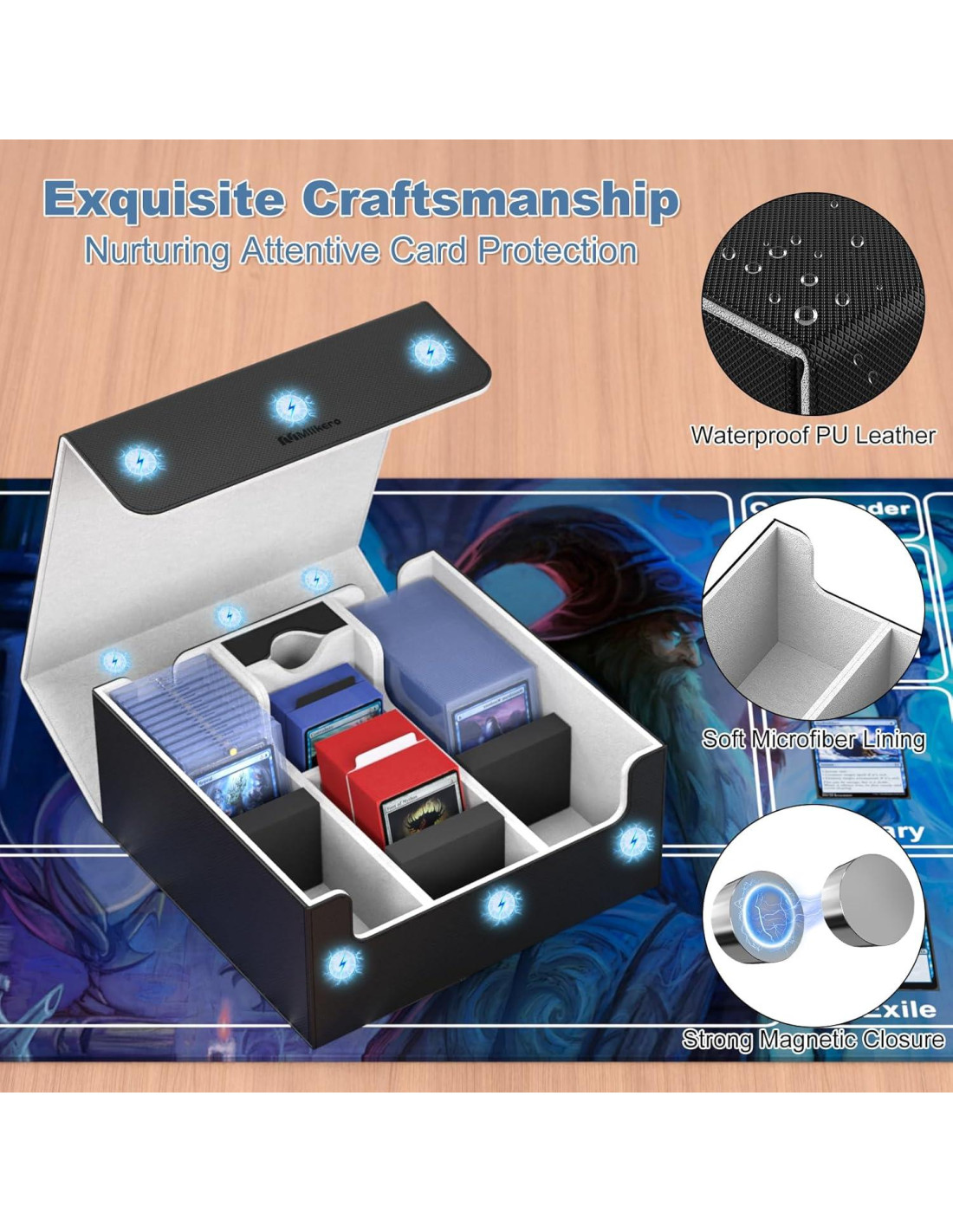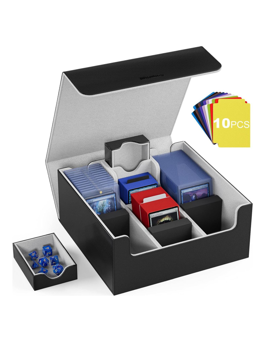 - Organización Eficiente de Cartas La caja de almacenamiento de cartas viene con 10 divisores de cartas y 3 tapones de espuma, asegurando que las cartas permanezcan en posición vertical y ayudando en la perfecta organización de cartas. El robusto diseño de cierre magnético asegura que la caja de barajas permanezca bien cerrada, incluso cuando se voltea, garantizando la seguridad de tus cartas sin ningún daño.