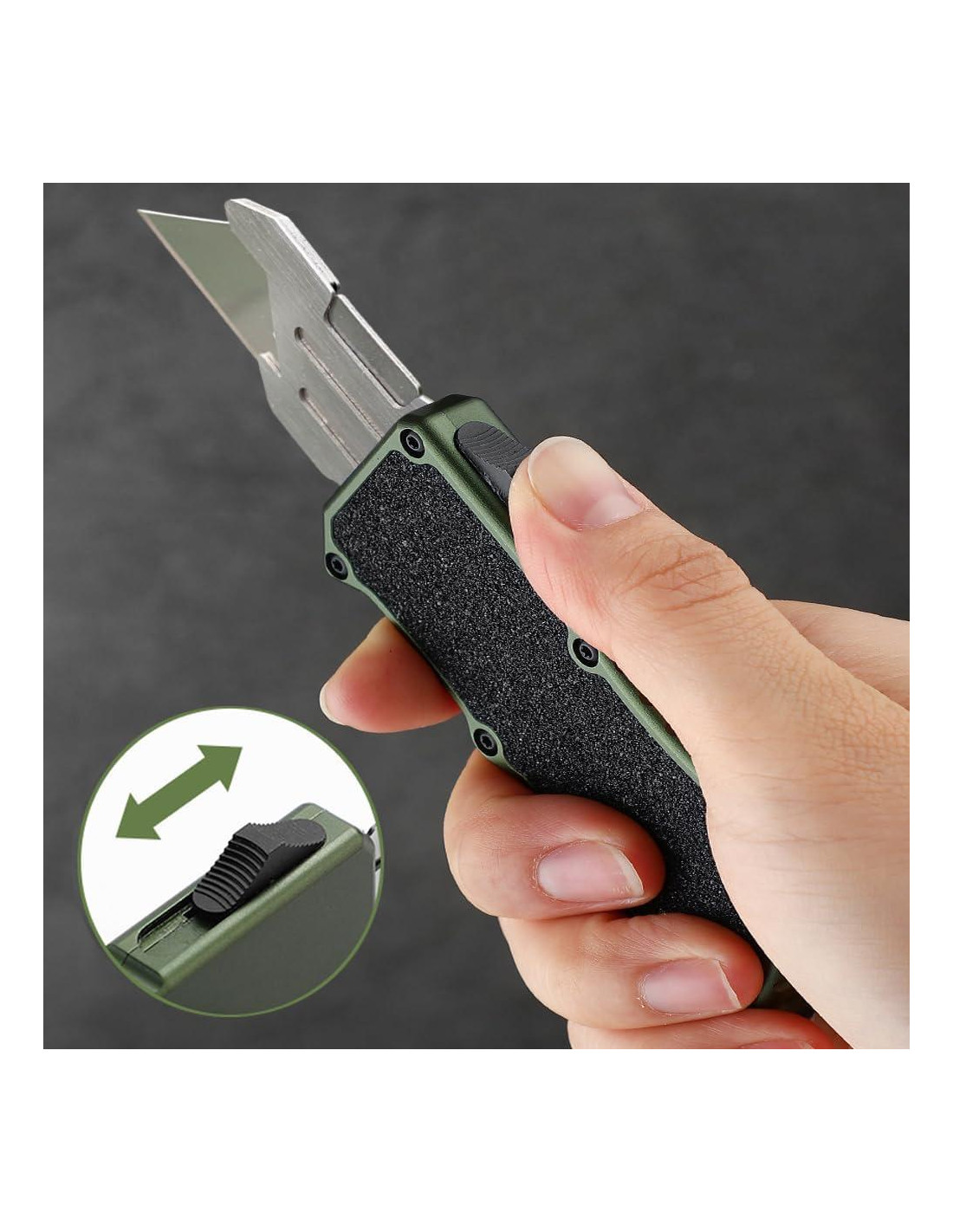 - Cuchillo utilitario: Nuestro cuchillo utilitario está hecho de una carcasa de aluminio de aviación. Durable y resistente EDC para la vida diaria. Una hoja afilada de cuchillo de trabajo cortará fácilmente cartón, alfombra, paneles de yeso, cuerda, vinilo, cuero o pisos. Usa nuestro cuchillo utilitario multipropósito como cuchillo de trabajo, cortador de cartones, cuchillo de construcción, herramienta cortadora de cartón, herramienta cortadora de alfombra.