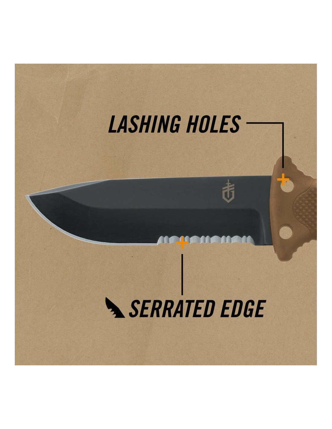 - EQUIPO DE SUPERVIVENCIA DURADERO: El cuchillo de supervivencia Gerber LMF II Infantry cuenta con una hoja fija compatible con MOLLE con un bisel parcialmente serrado, agarre texturizado y afilador integrado