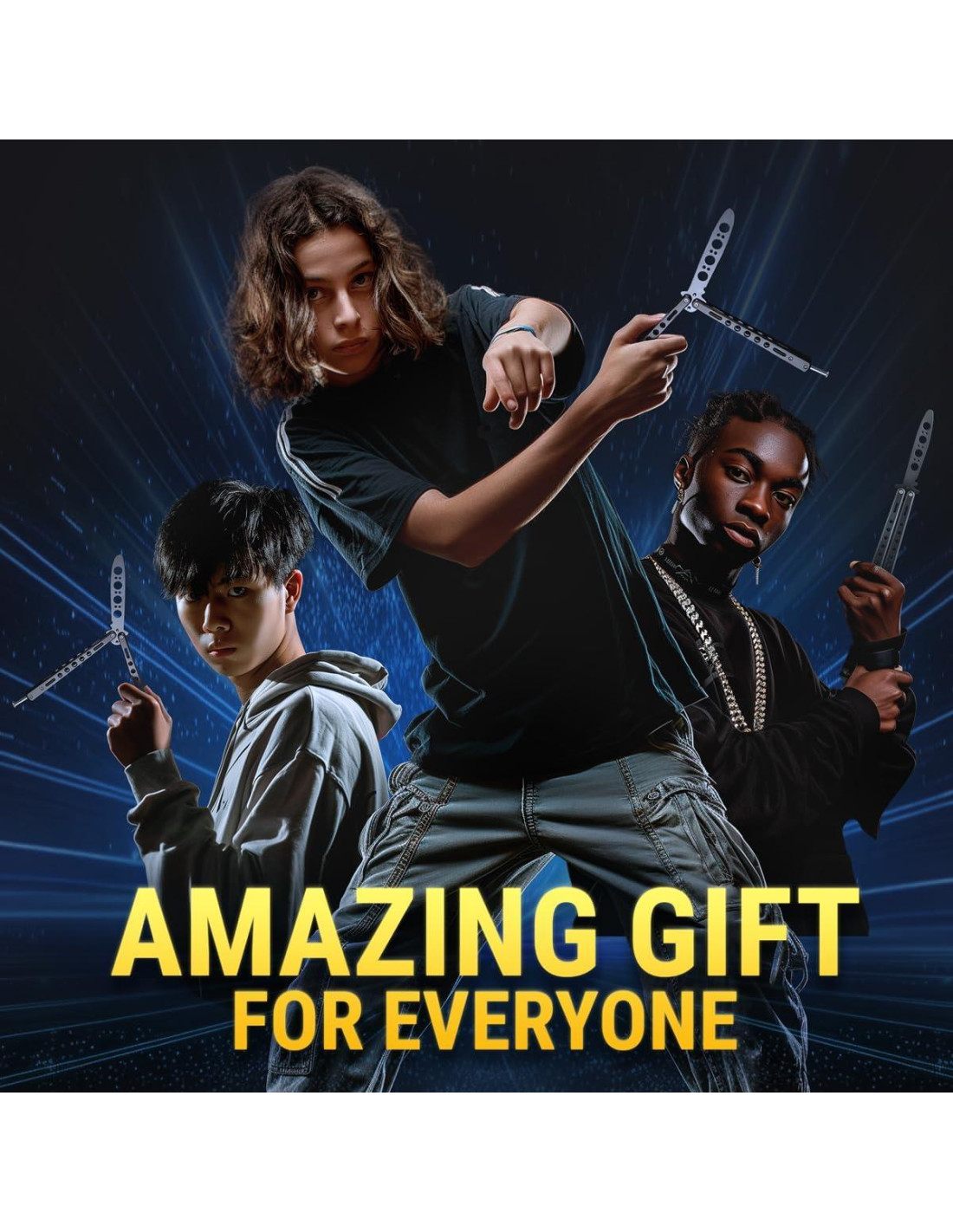 - HOJA SEGURA. El Balisong tiene una hoja sin afilar, asegurando la práctica sin cortes, lesiones o moretones en las manos. Nuestro cuchillo mariposa no puede ser afilado debido a su diseño.