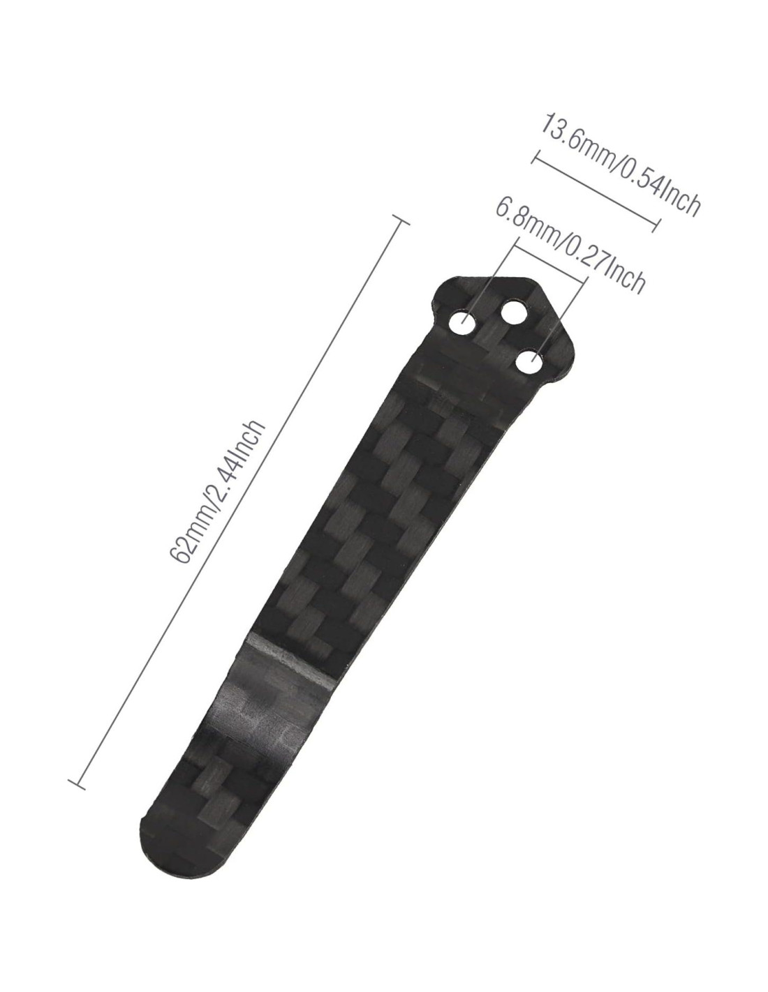 - [ESPECIFICACIONES] - Longitud total del clip de bolsillo 2.43 Pulgadas (61.8mm), ancho 0.54 Pulgadas (13.6mm). Diseño de 3 agujeros y la distancia entre los dos agujeros inferiores es de aproximadamente 0.27 Pulgadas (6.8mm).