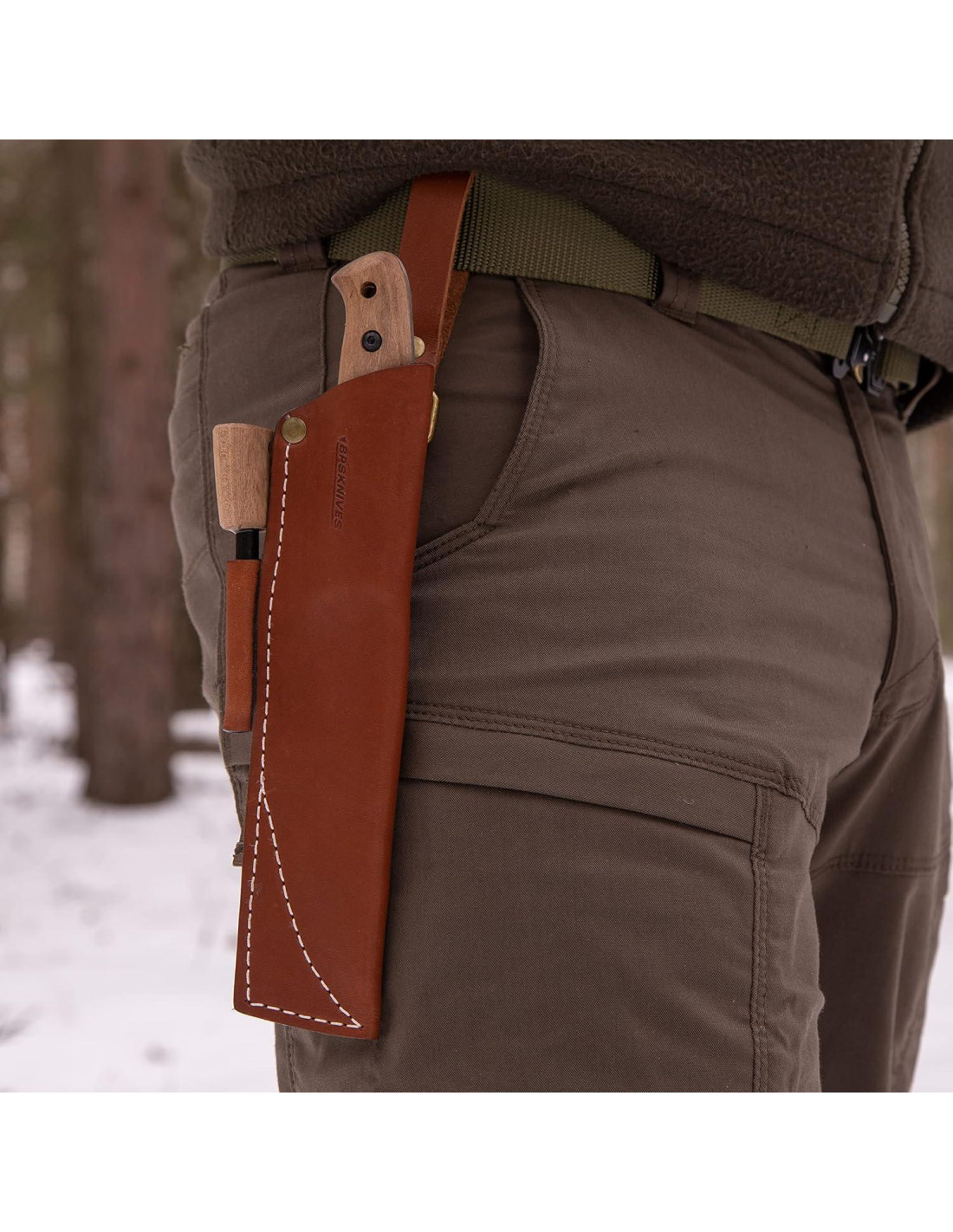 - ACCESO RÁPIDO - ¡Mantén tus cuchillos seguros y fácilmente accesibles con esta Funda de Cinturón de Cuero! Su diseño es ideal para cuchillos con un tamaño total de 7 a 9 pulgadas (17.78 a 22.86 cm), así que siempre estarás listo con acceso rápido a tu hoja.