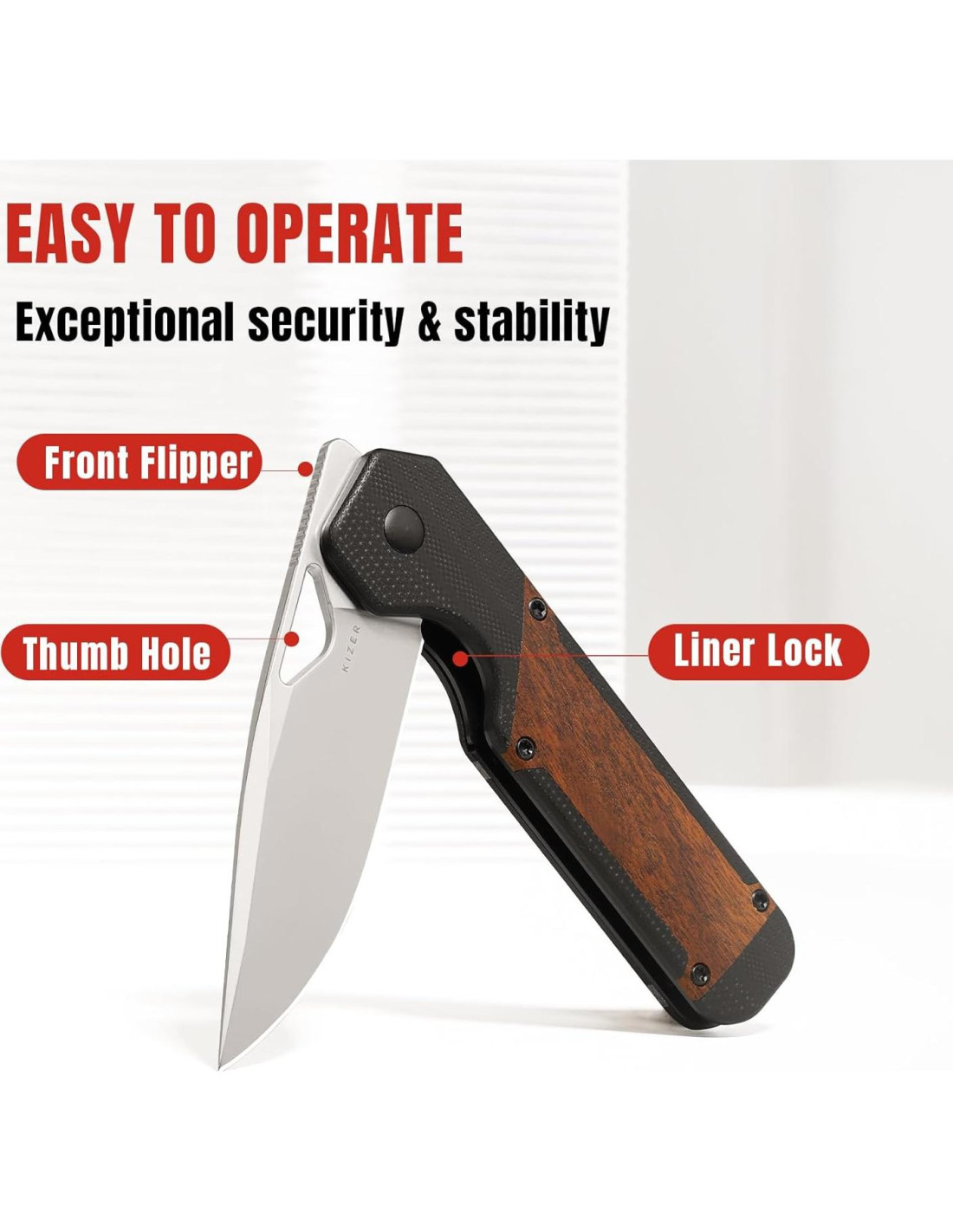 - Ideal para EDC: El cuchillo plegable Kizer con clip de bolsillo proporciona un método de transporte discreto. Ideal para cortar, abrir cajas, senderismo, camping, pesca, caza y más. Combina practicidad, estilo y rendimiento superior. El cuchillo de bolsillo EDC Militaw para hombres y mujeres es un excelente regalo para tu familia: papá, mamá, hermano, hermana, esposo, esposa, tío, tía; y tus amigos. Este cuchillo plegable también se puede dar a los padrinos y damas de honor como recuerdos de boda.