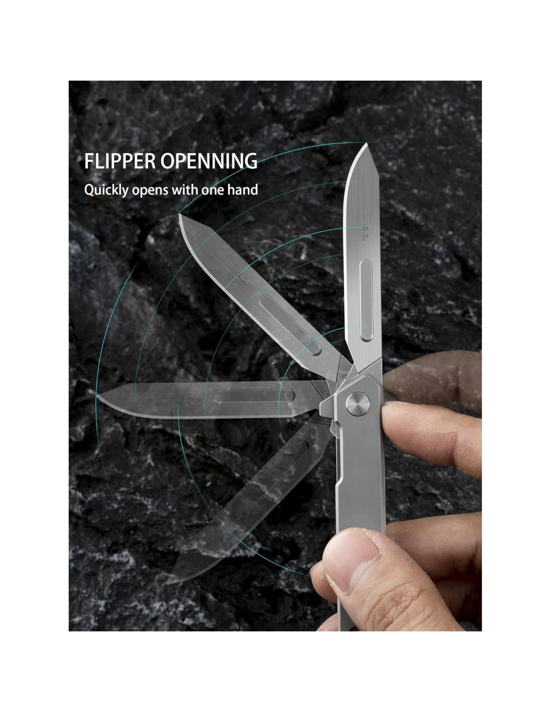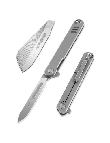 - Diseño Elegante: Este cuchillo de bolsillo cuenta con un diseño moderno y estiloso con un mango de aleación de titanio, disponible en una opción de color plateado