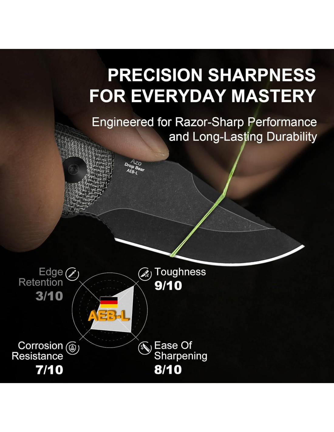 - Fuerza Confiable para Tareas Diarias: El acero AEB-L proporciona bordes extremadamente afilados y fácil afilado, haciendo que el cuchillo de caza de bolsillo de cuchilla fija de transporte horizontal mini sea perfecto para tareas de precisión; su resistencia a la corrosión asegura durabilidad en condiciones húmedas y secas; el jimping largo en la espina y el amplio choil para los dedos ofrecen un agarre seguro, mientras que el jimping frontal cerca de la punta proporciona control antideslizante para cortes precisos, incluso en condiciones húmedas