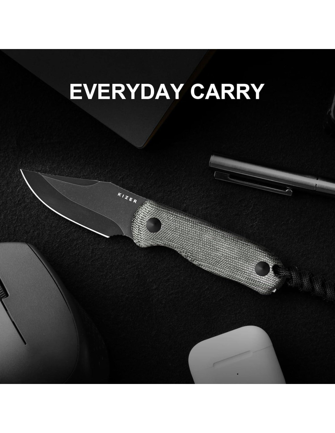 - Diseño Ligero y Compacto: Con una hoja de 2.6 pulgadas (6.6 cm) y un peso de menos de 2.77 oz (78.4 g), este cuchillo de cuchilla fija Kizer drop bear con funda de kydex es perfecto para llevar a diario; lo suficientemente duradero para actividades al aire libre como senderismo, camping o caza, ofrece el equilibrio ideal entre portabilidad y resistencia