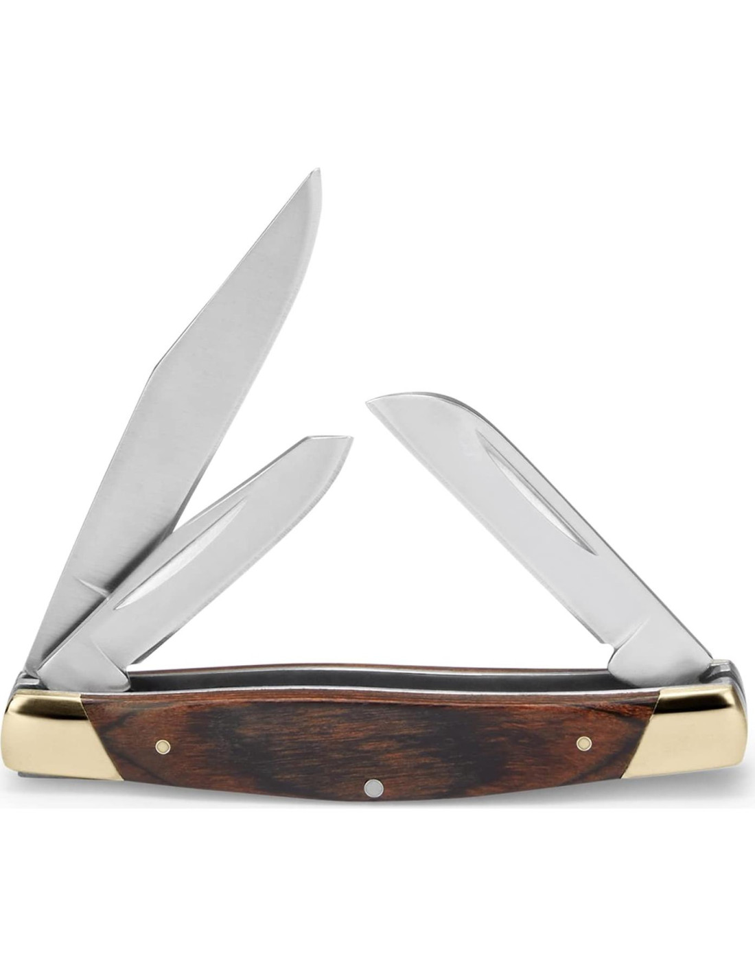 - TRES HOJAS- El 373 Trio cuenta con tres hojas: 2-1/2" (6.35 cm) clip, 1-3/4" (4.45 cm) sheepsfoot y 1-11/16" (4.32 cm) spey. El acero 420J2 es conocido por su resistencia a la corrosión. 3-1/4" (8.26 cm) de longitud cerrada, 1.9 oz (53.86 g).