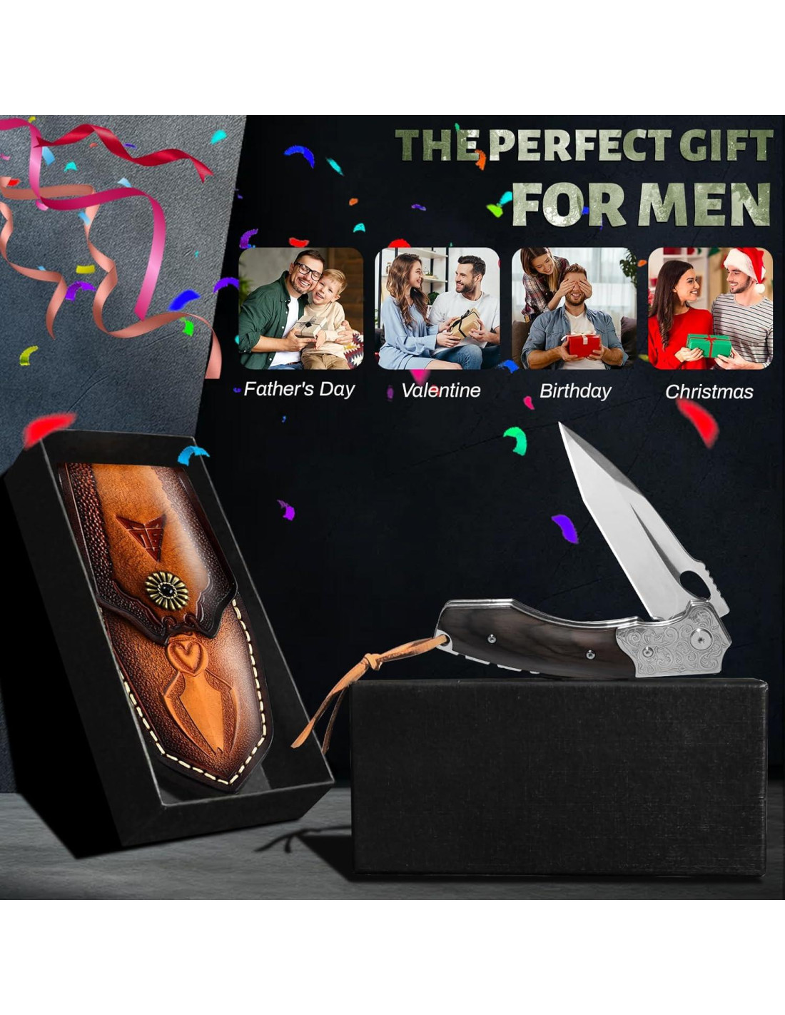 - Funda de cuero premium para estilo y protección. Este cuchillo plegable no solo es funcional; es una pieza de declaración. El diseño compacto y perfectamente equilibrado se adapta cómodamente a tu mano, mientras que la funda de cuero clásica añade un toque de estilo atemporal. Con un peso de solo 0.16 kg y midiendo 21.1 cm en total, es el compañero ideal para acampar, hacer senderismo o llevar a diario, ofreciendo tanto facilidad de uso como almacenamiento elegante.