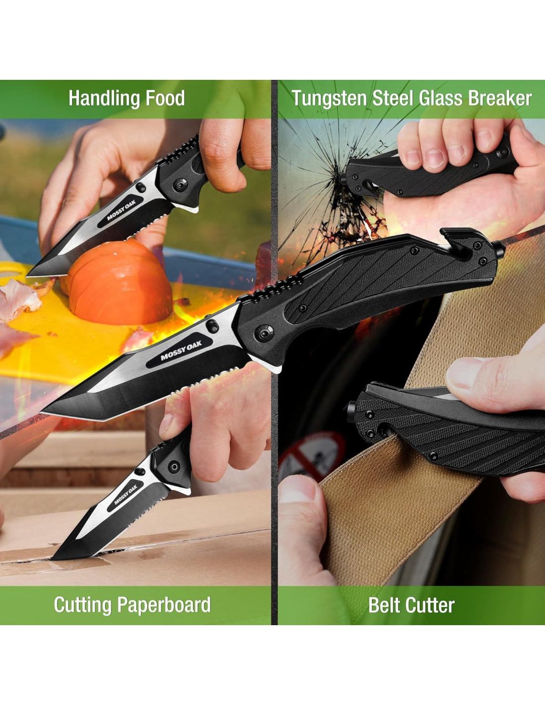 - Cuchillo de Bolsillo de Alta Calidad: El cuchillo plegable MOSSY OAK está hecho de acero inoxidable de alta calidad, con excelente dureza, buena retención de filo y resistencia a la corrosión. Presenta una forma de hoja Tanto con un filo afilado, lo que permite realizar tareas de corte y rebanado con facilidad.