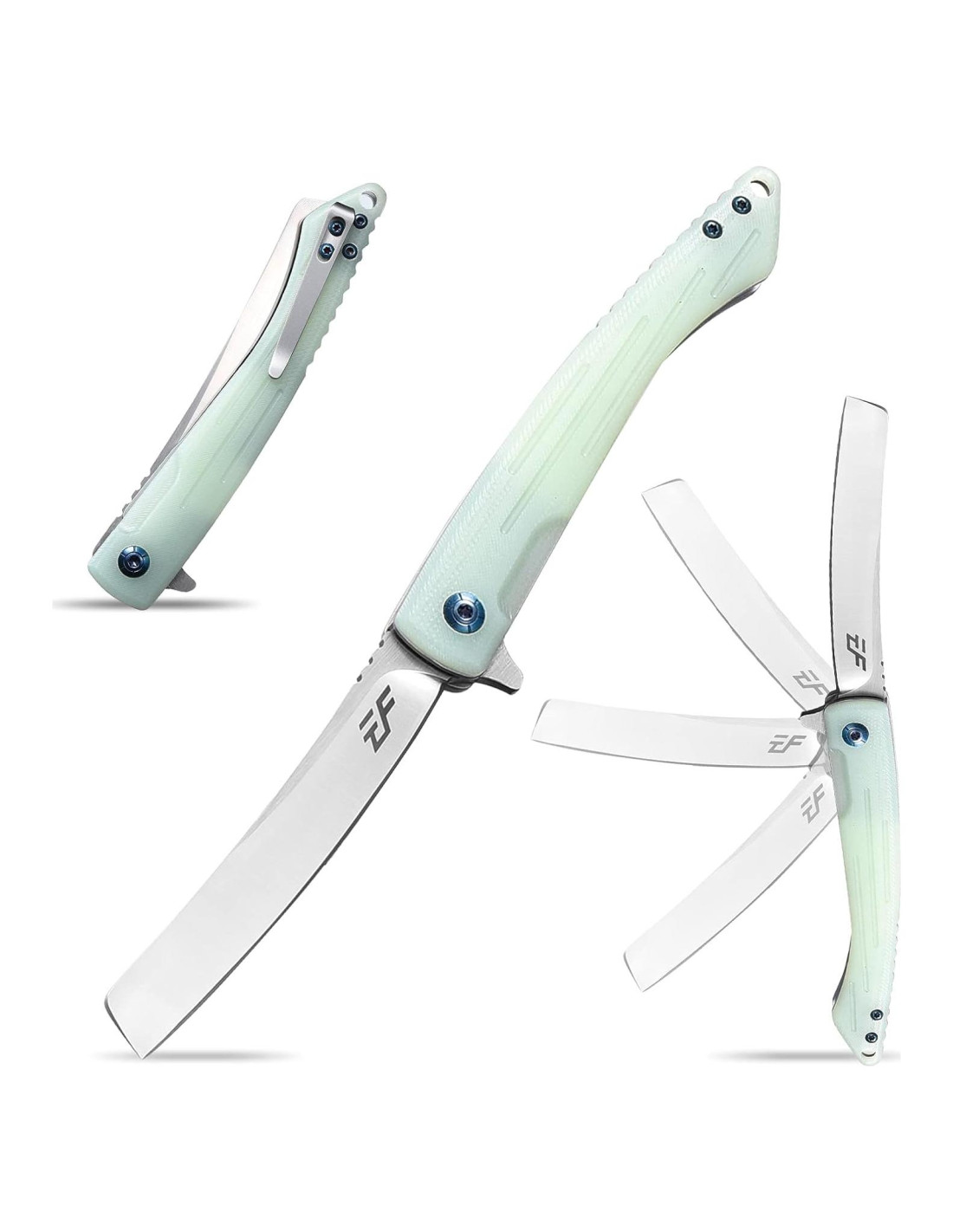 El cuchillo plegable Eafengrow es un fantástico cuchillo de bolsillo EDC que ofrece un estilo y capacidad inigualables. La hoja está hecha de acero inoxidable D2 de alta precisión y rendimiento, conocido por su excelente dureza, retención de filo y resistencia al desgaste. El mango G10 tiene un excelente equilibrio entre dureza y resistencia a la corrosión, su diseño ergonómico único ofrece un agarre sólido y una sensación cómoda en la mano, fácil de operar. La apertura con rodamiento de bolas ofrece un deslizamiento suave. Un marco de bloqueo seguro proporciona un bloqueo de hoja seguro y sólido, y un clip de bolsillo permite un transporte conveniente y ajustable por el usuario. Plegable y duradero, la serie de cuchillos plegables Eafengrow ofrece calidad Eafengrow en un cuchillo potente y útil. El elegante cuchillo de bolsillo plegable EDC es esencial para el uso diario, adecuado para abordar casi cualquier tarea: empaquetar cajas, plástico pesado o preparación de alimentos con cuerda, herramienta de supervivencia, camping, senderismo, táctico, trabajo o hace el regalo perfecto. El elegante cuchillo EDC con apariencia de afeitadora es esencial para el uso diario, adecuado para abordar casi cualquier tarea: empaquetar cajas, plástico pesado o preparación de alimentos con cuerda, herramienta de supervivencia, camping, senderismo, táctico, trabajo o hace el regalo perfecto. Gran compañero para cualquier excursionista, paisajista, mochilero, pescador, jardinero, guía de vida silvestre, electricista o cualquier persona que necesite un transporte diario confiable. Acceso rápido y fácil con el conveniente clip de bolsillo, cuchillo de clip rápido, lo que lo hace ideal para el transporte diario, uso general para necesidades diarias en el hogar, utilidad, pesca, agricultura, camping, senderismo, ganadería o coleccionismo.